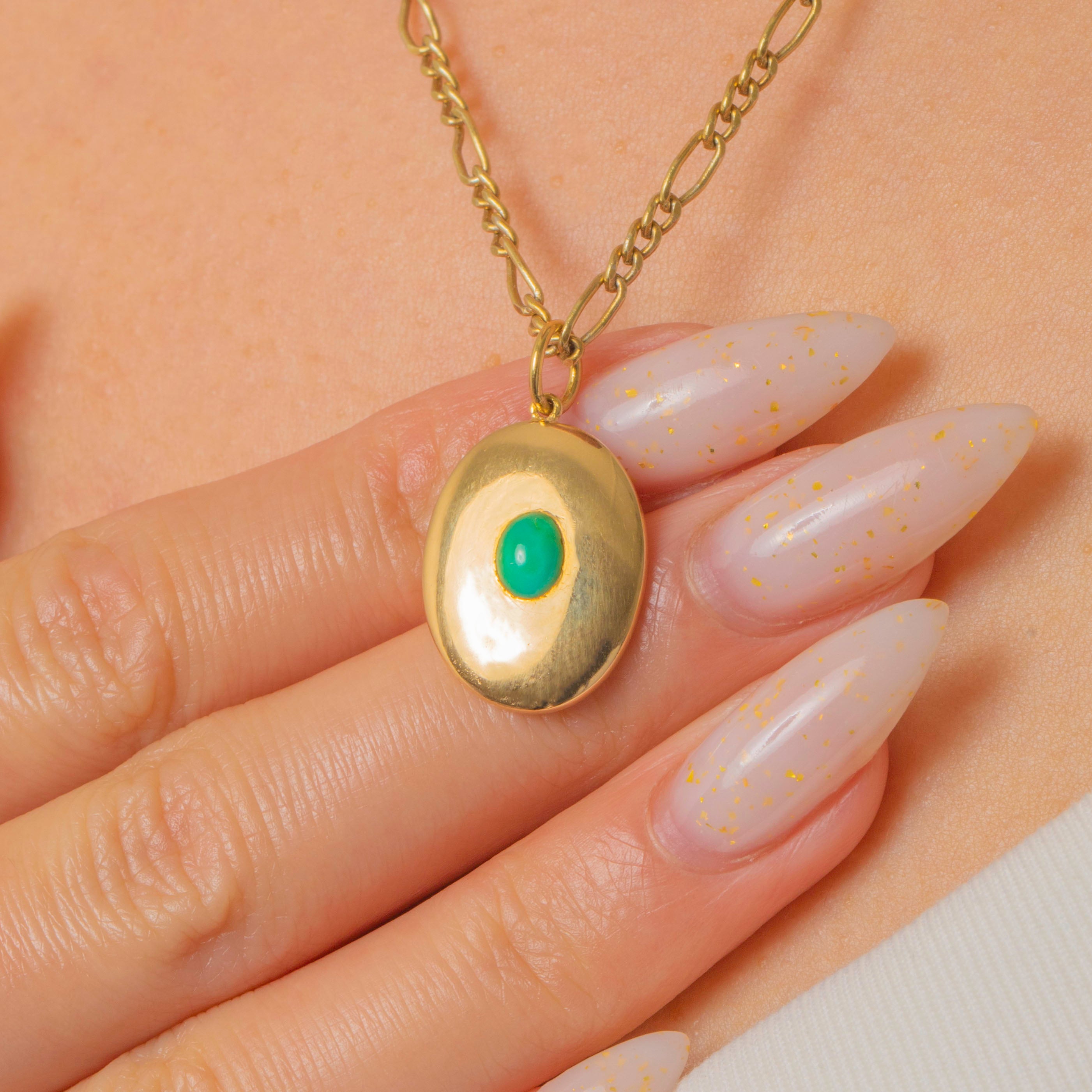 Chubby, tactile and deliciously minimalist, this late Victorian charm is crafted in solid 18ct Gold with a single flush‑set Turquoise cabochon at its heart. The domed “pebble” profile and glossy high polish give it a sculptural, modern feel, while the vivid green‑blue cabochon brings a joyful pop of colour.