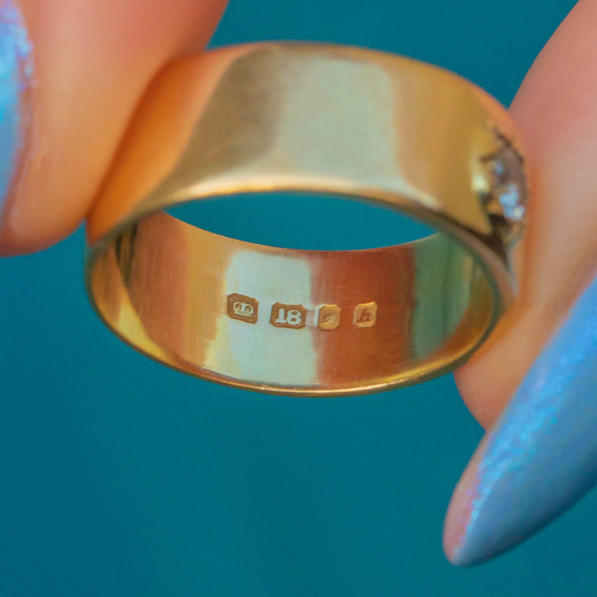 HALLMARKS: Crown, 18, London Leopard's Head, Date letter h for the year 1964.