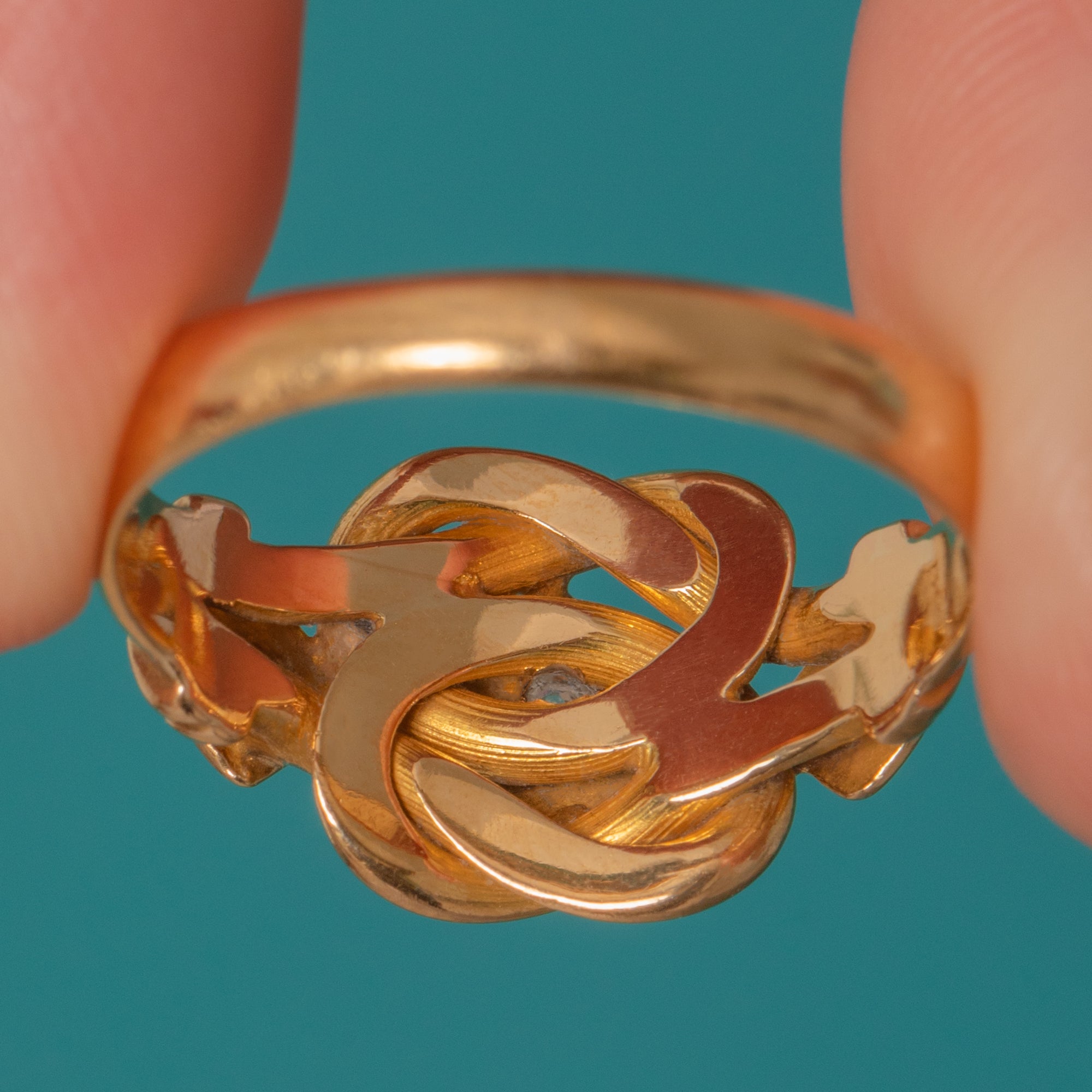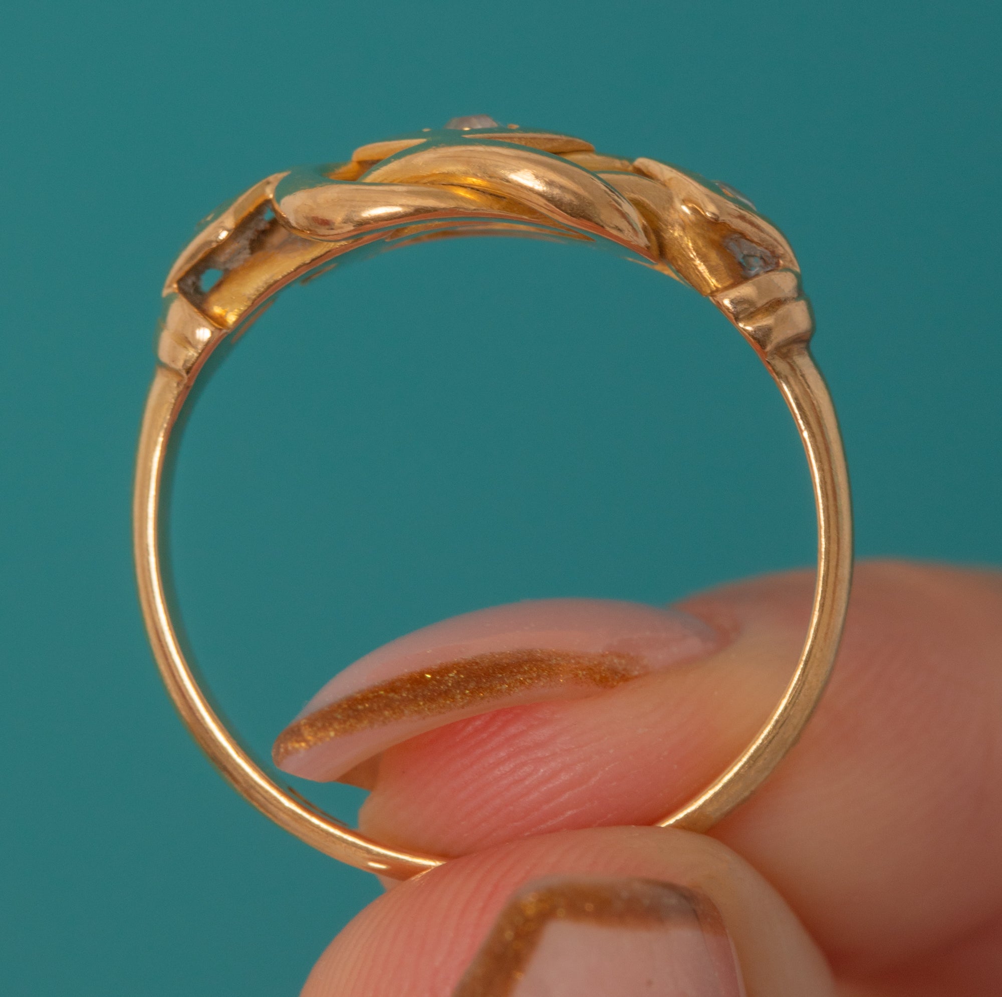 Chunky Antique 18ct Gold Diamond Knot Ring, c.1913
