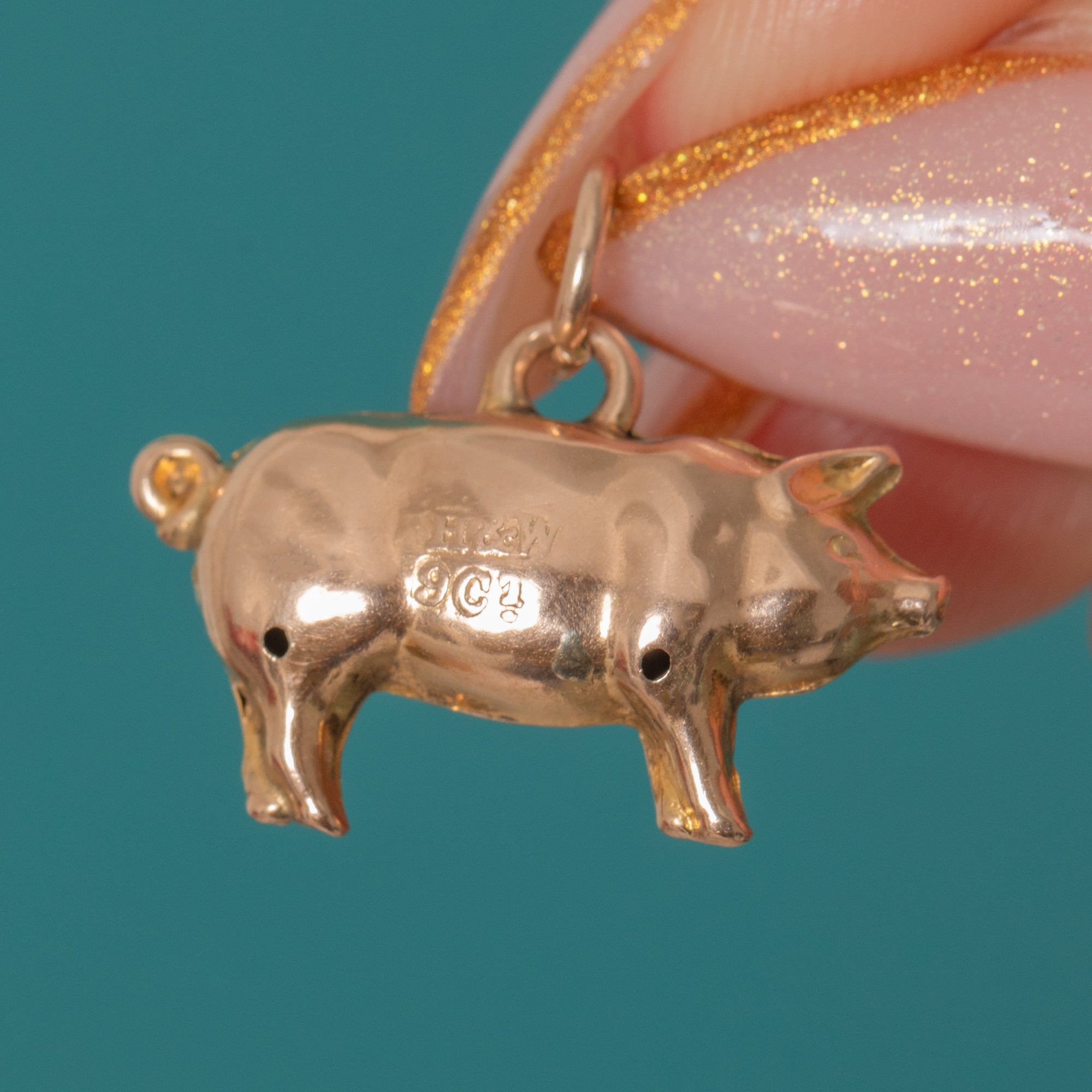 This dainty vintage pig charm is a delightful little treasure, full of character and charm. Crafted in solid 9ct Gold with sweet detailing, it makes a joyful addition to any charm bracelet or necklace — a classic good-luck symbol rendered in glowing Yellow Gold.