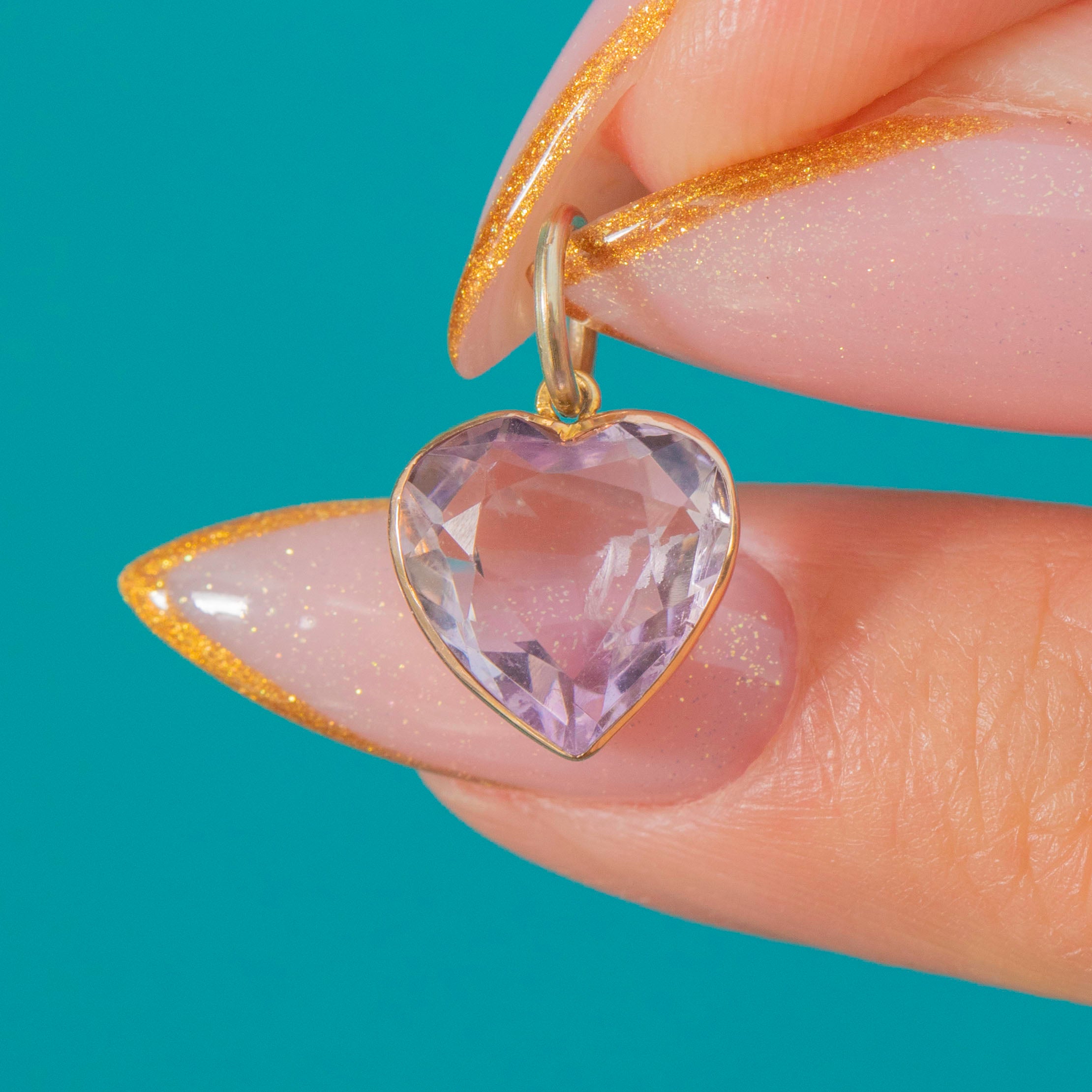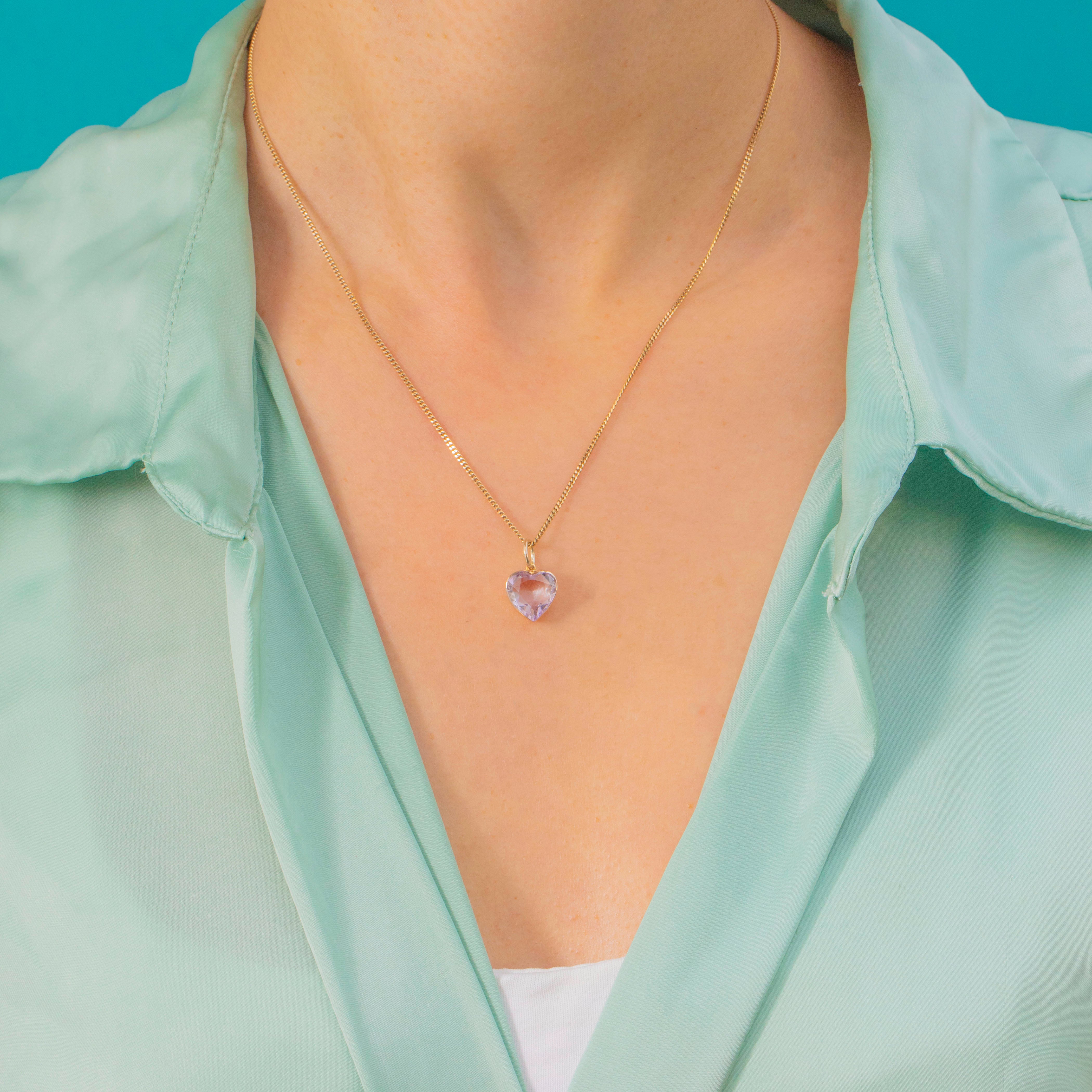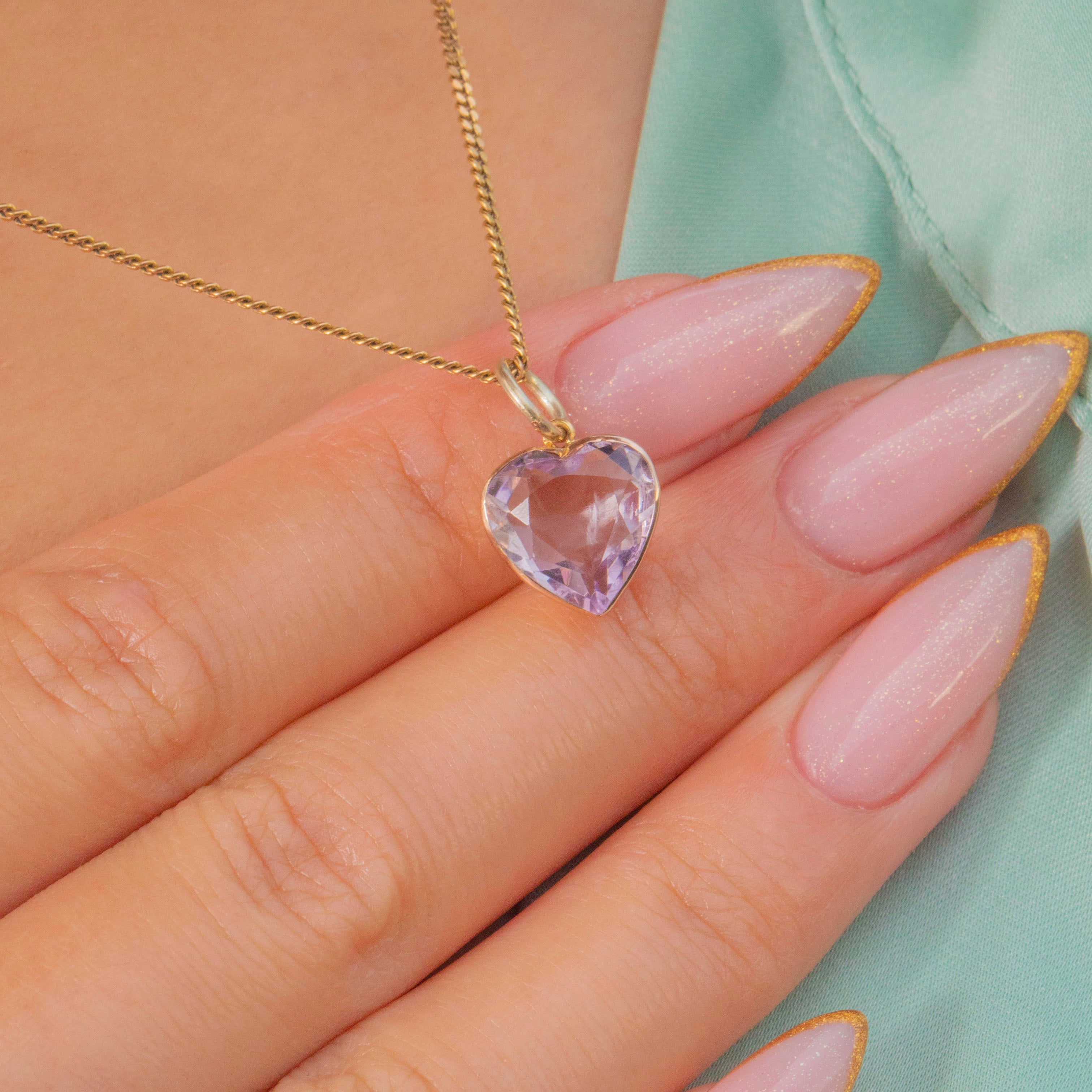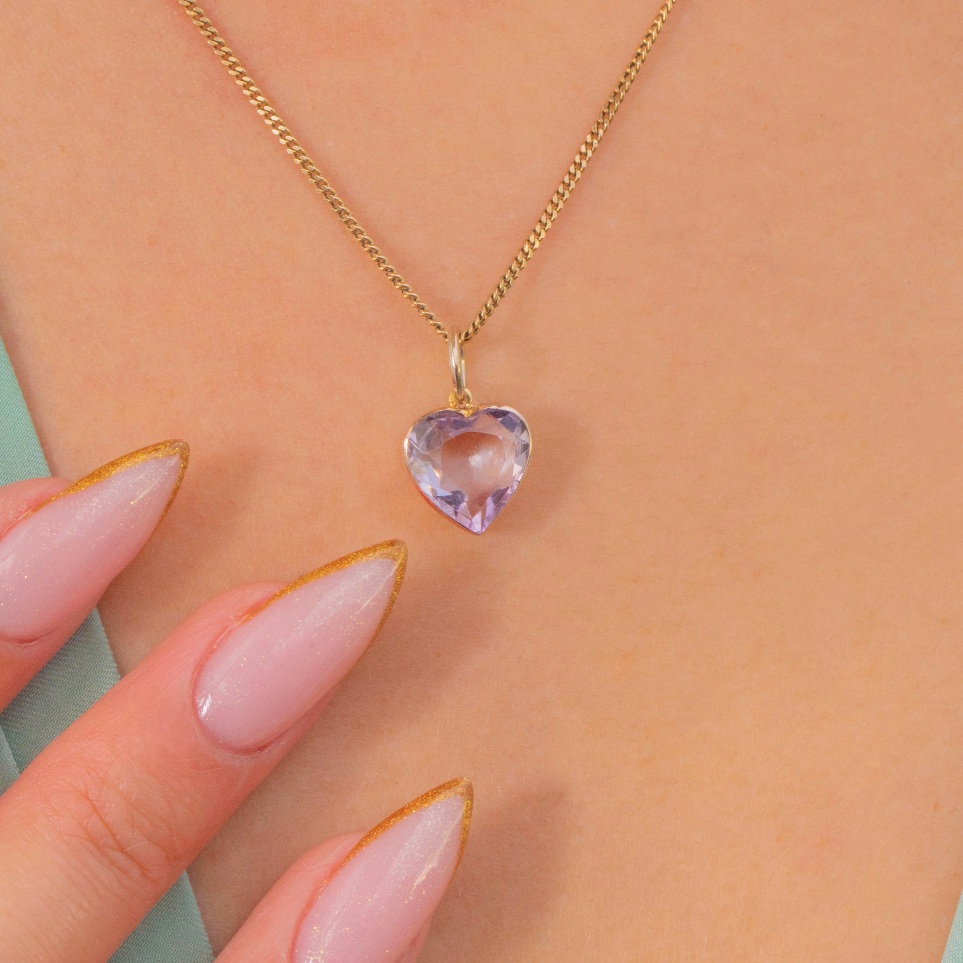 A dainty antique heart charm set with a sweet lilac-pink Amethyst. The stone has a lovely glow and romantic colour, estimated at approximately 1.10ct, making it a perfect little love token for layering or everyday wear.