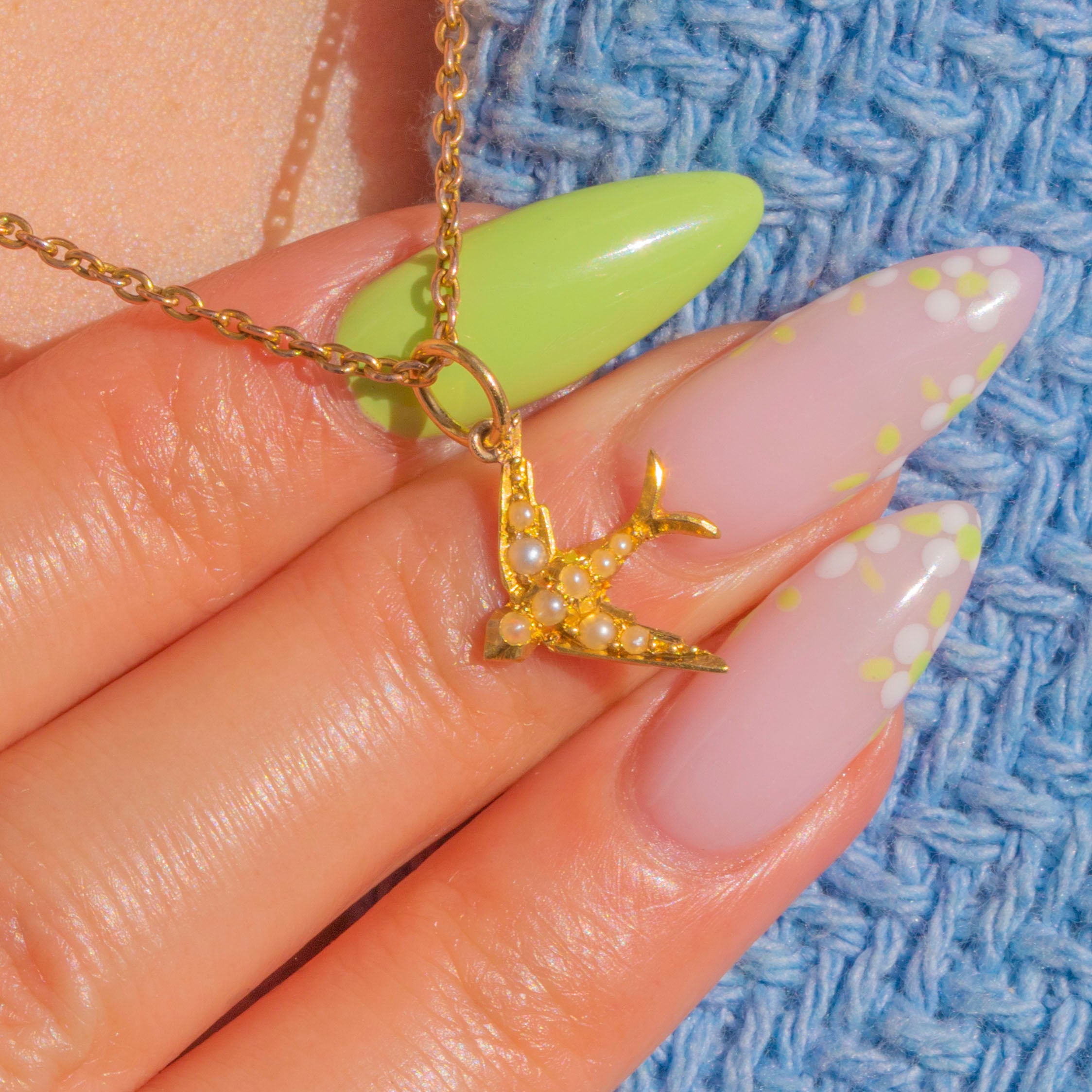 Dainty Victorian 18ct Gold Pearl Swallow Charm