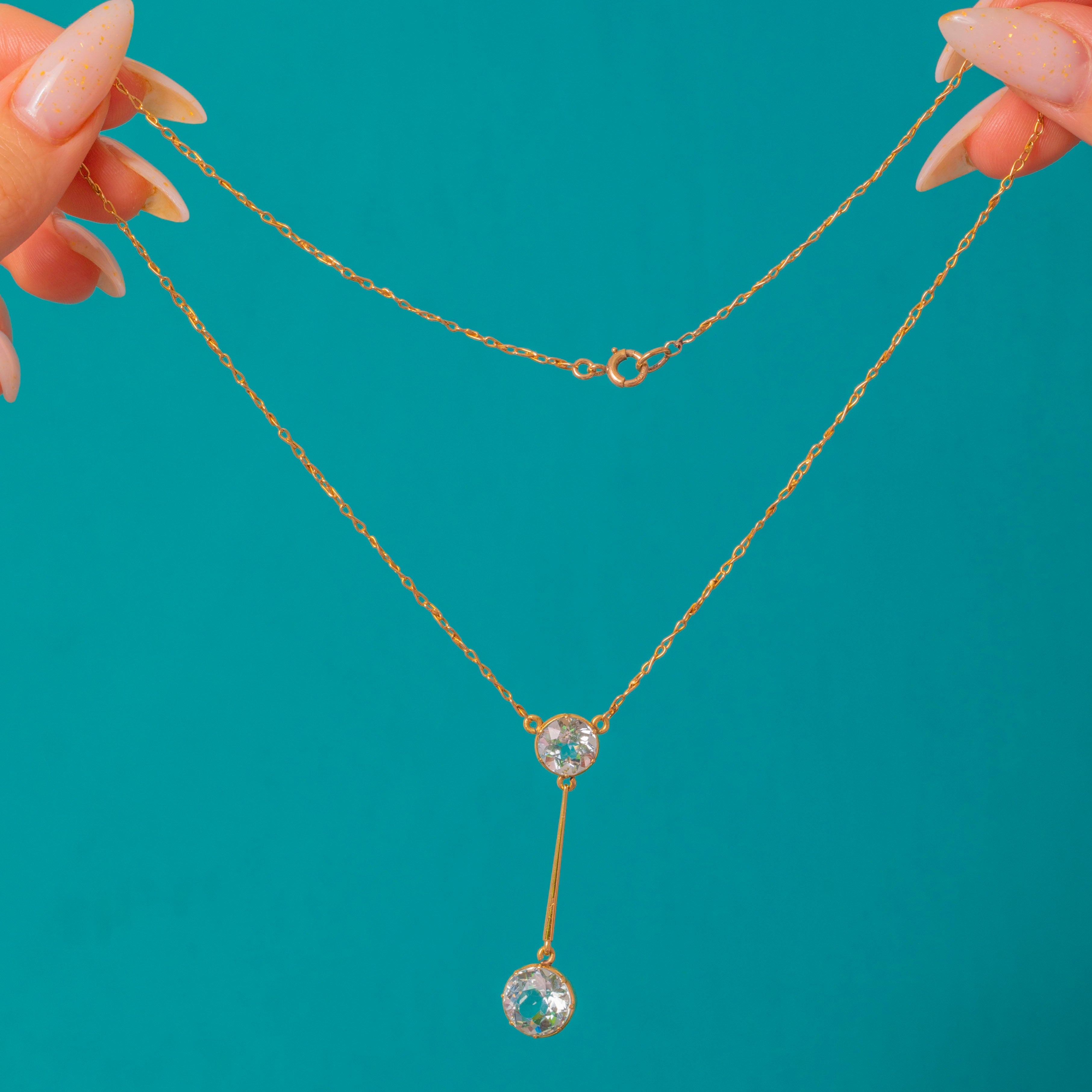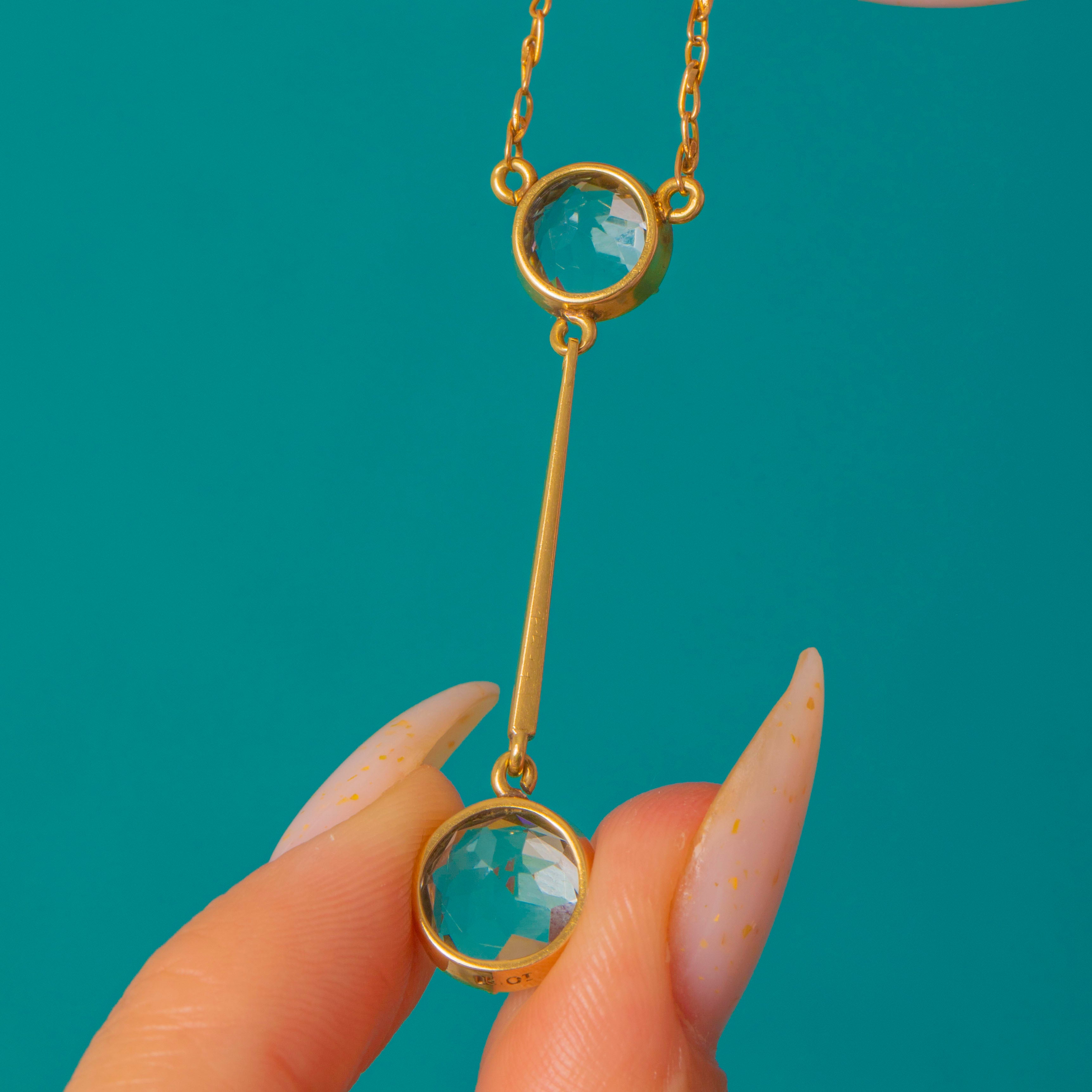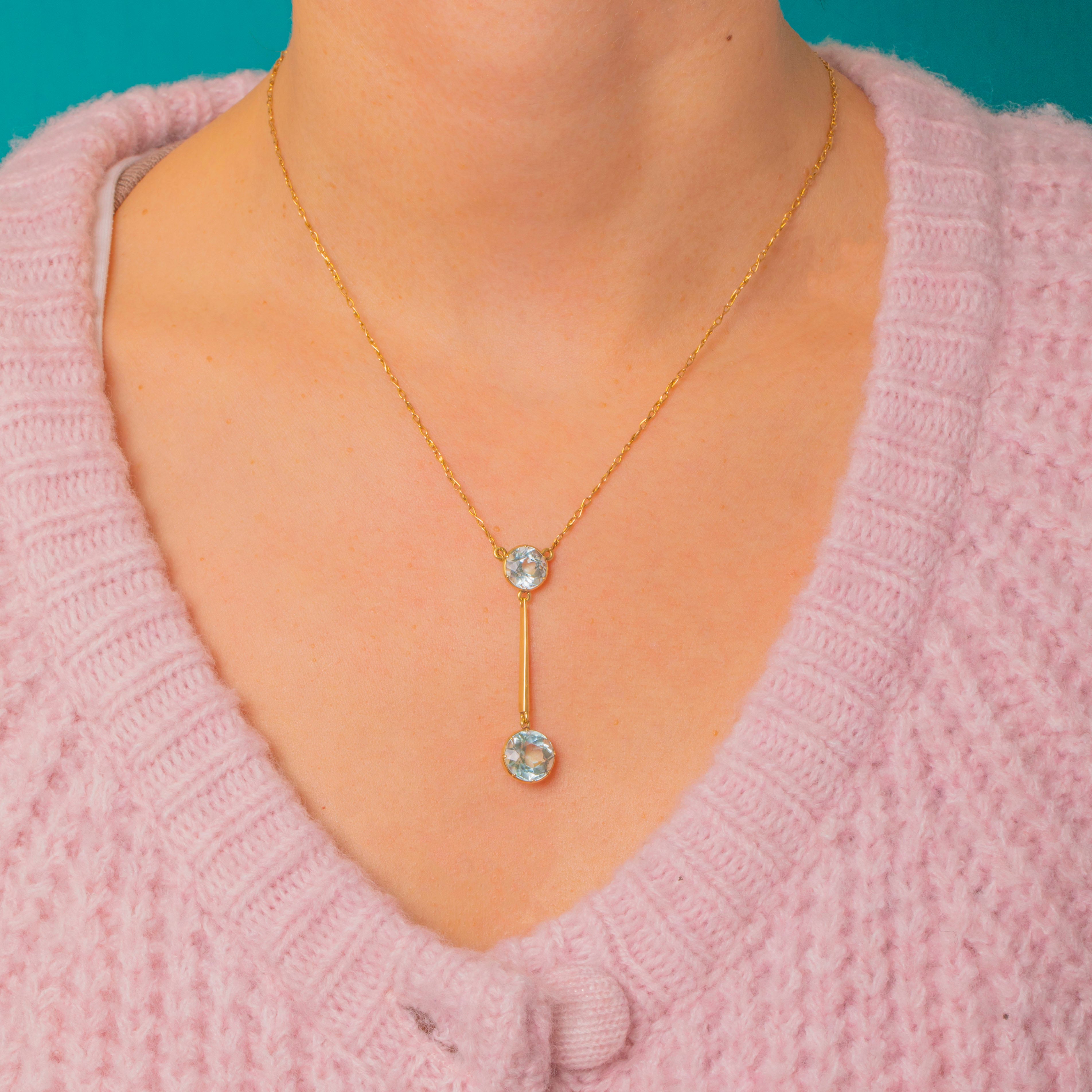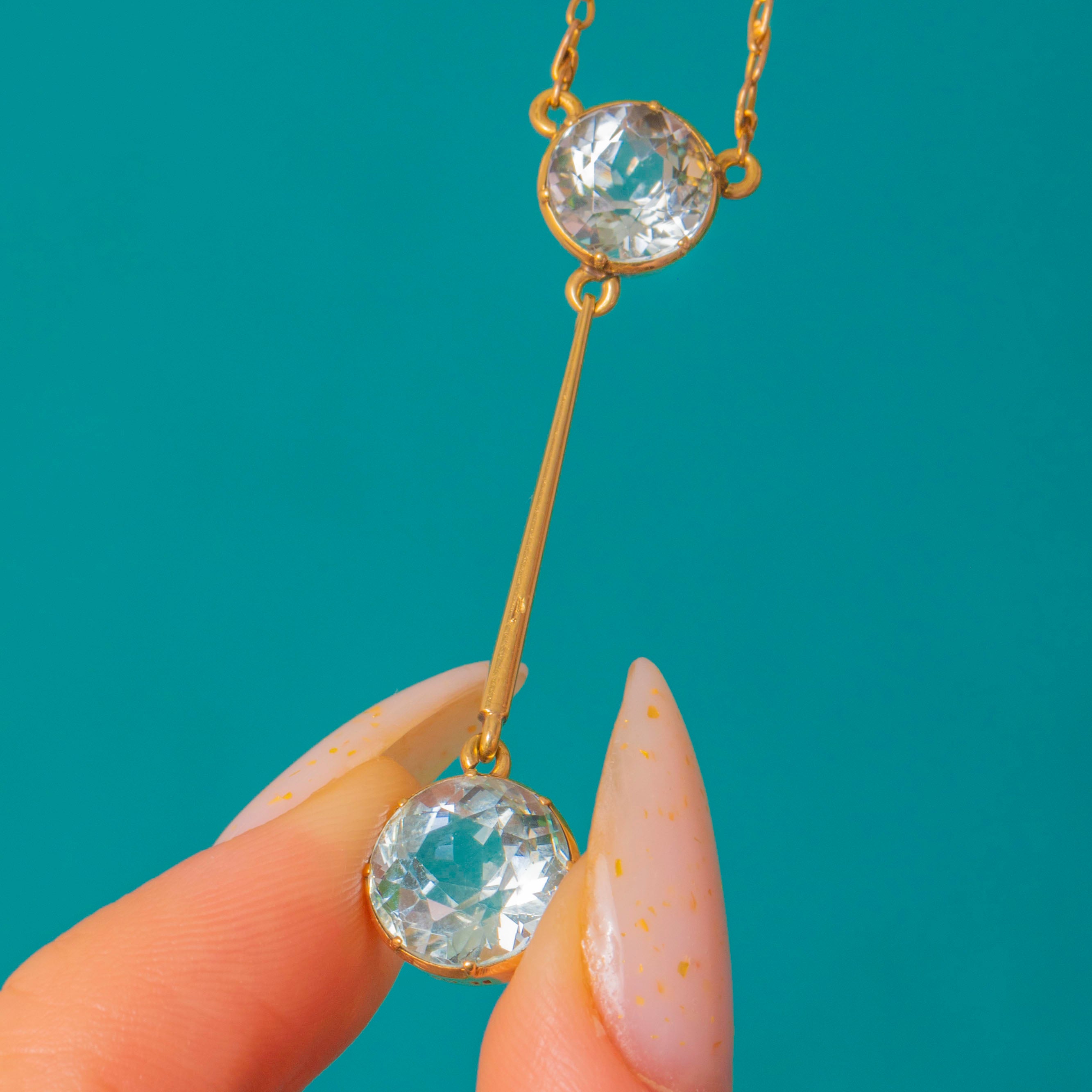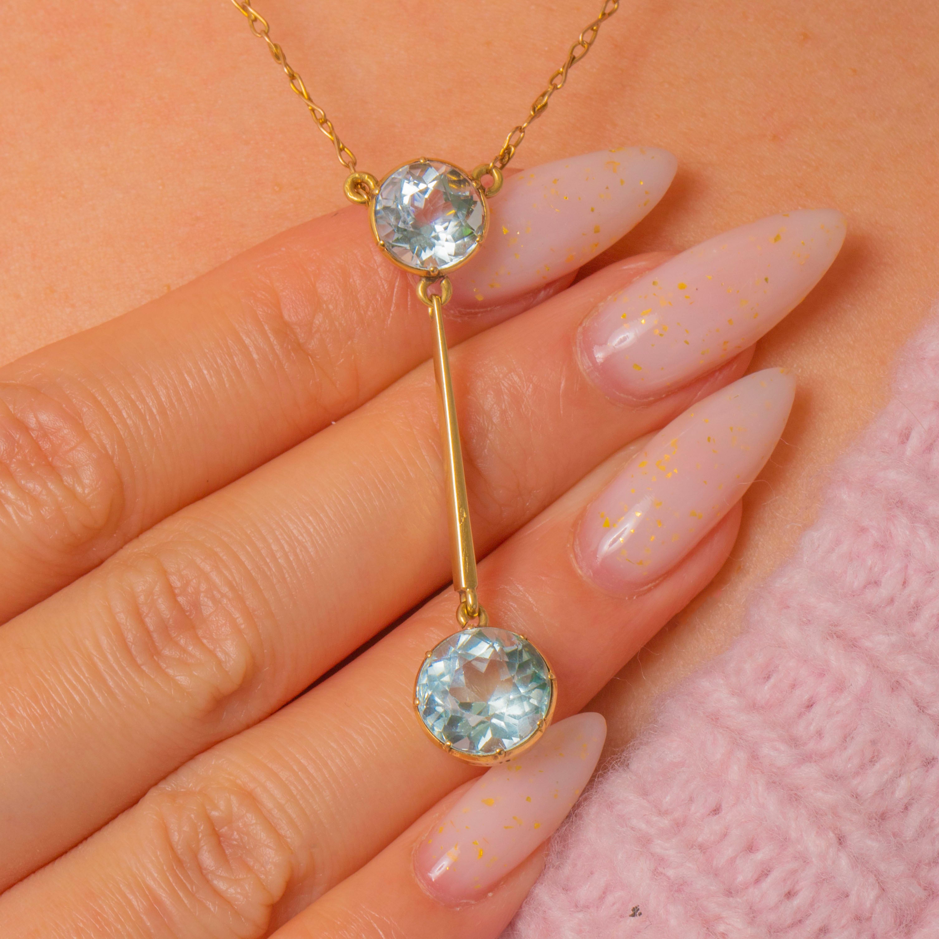 Edwardian 15ct Gold Aquamarine Negligee Drop Necklace - 4.20ct Aquamarine