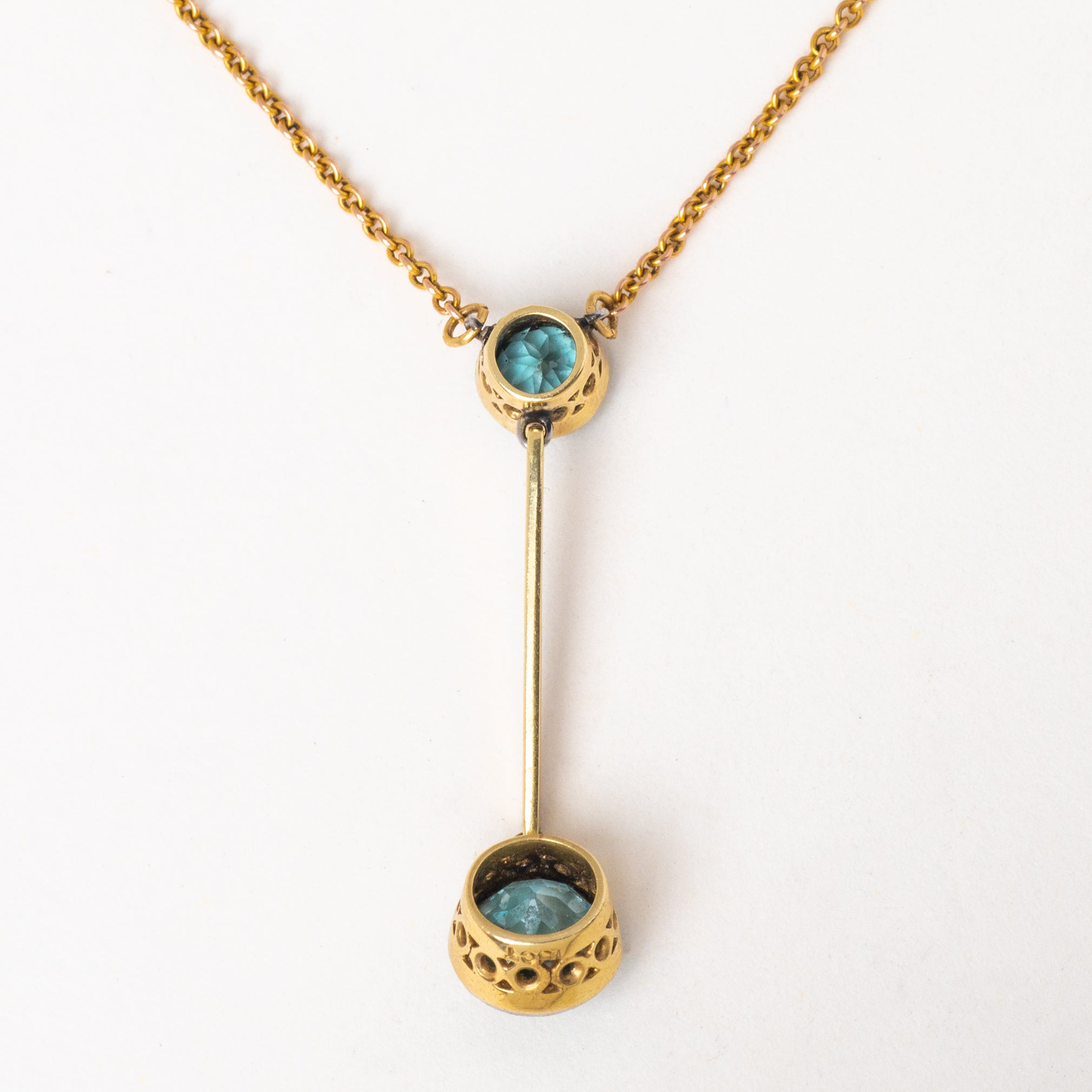 Edwardian 15ct Gold Blue Zircon Drop Necklace, 2.10ct