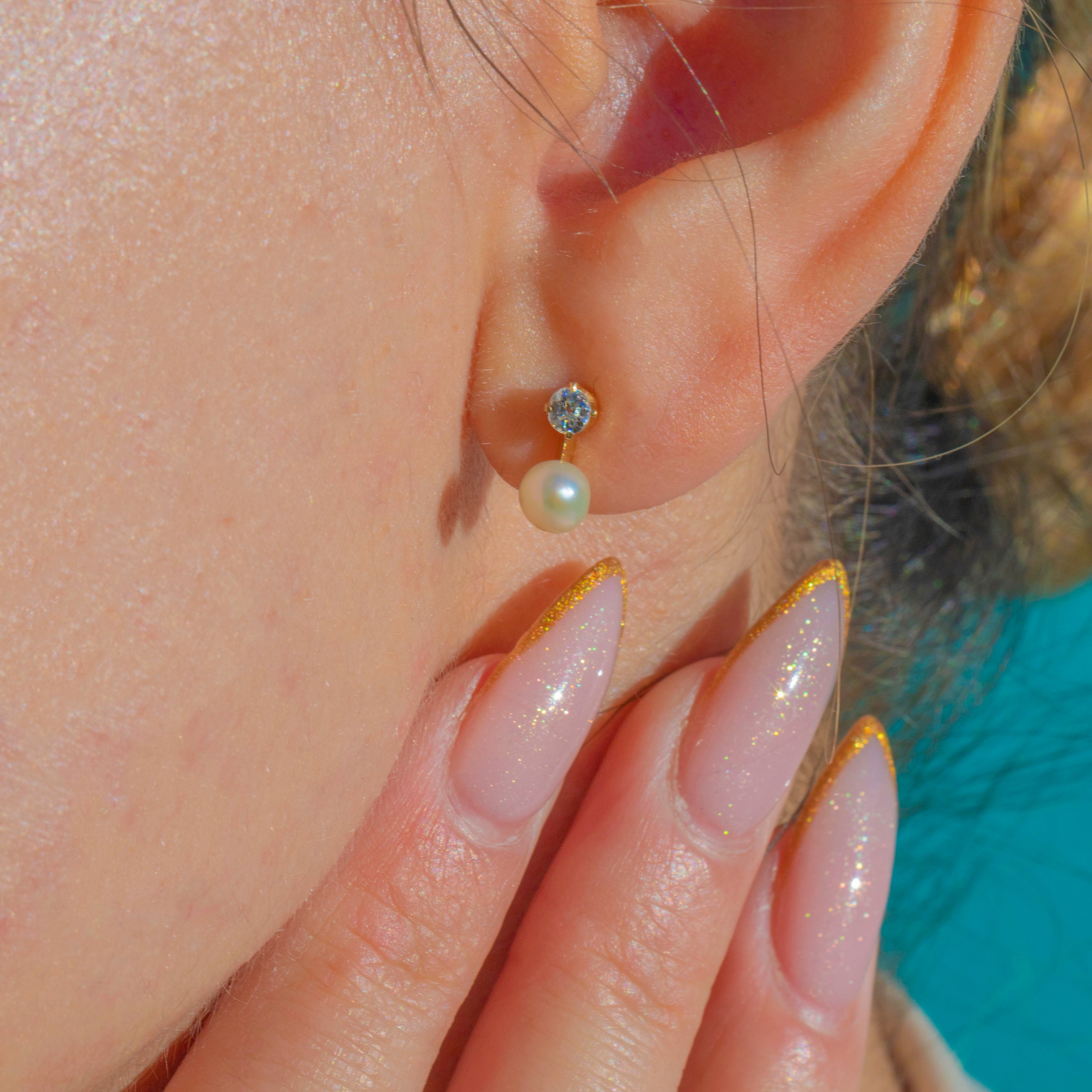 These Edwardian 18ct Gold Pearl and Diamond studs are an elegant and timeless antique pair. Each earring features a lustrous 5mm Pearl accented by a bright Diamond, adding a delicate sparkle that sits beautifully on the ear.