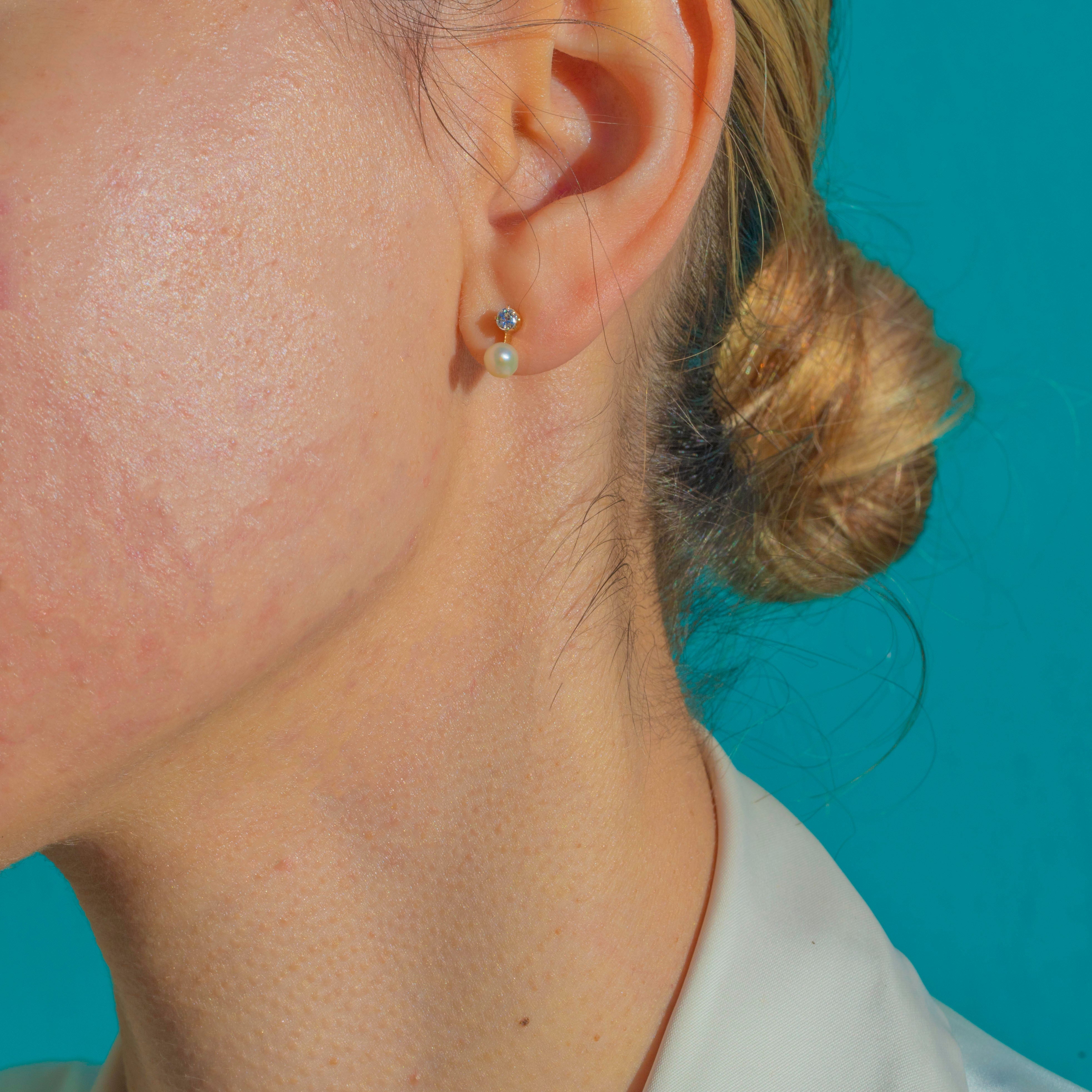 These Edwardian 18ct Gold Pearl & Diamond studs are a sweet yet luxurious pair, perfect for everyday elegance or a refined bridal look. Each earring is set with a creamy White Pearl framed by a bright Diamond accent, giving just the right amount of sparkle without feeling overdone.