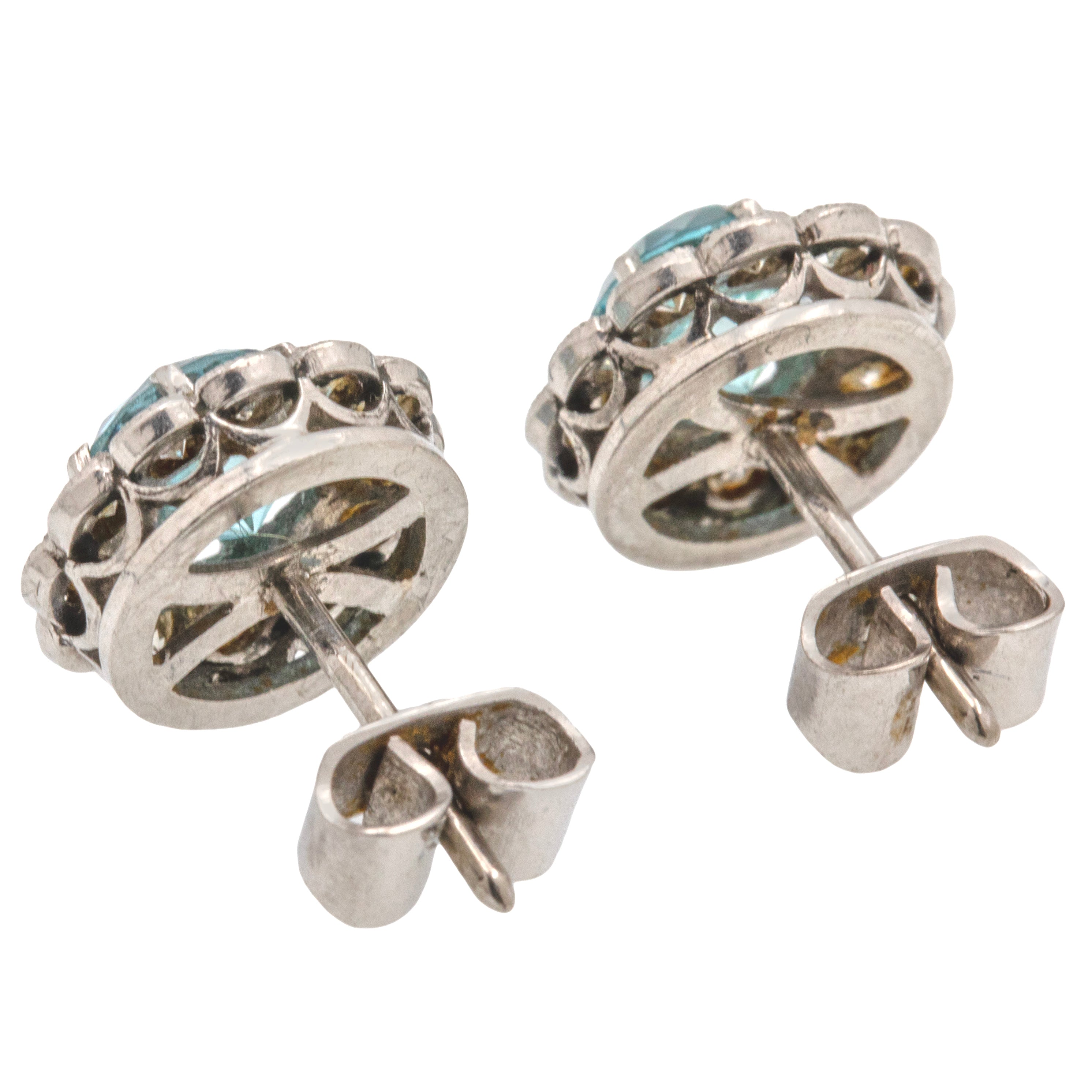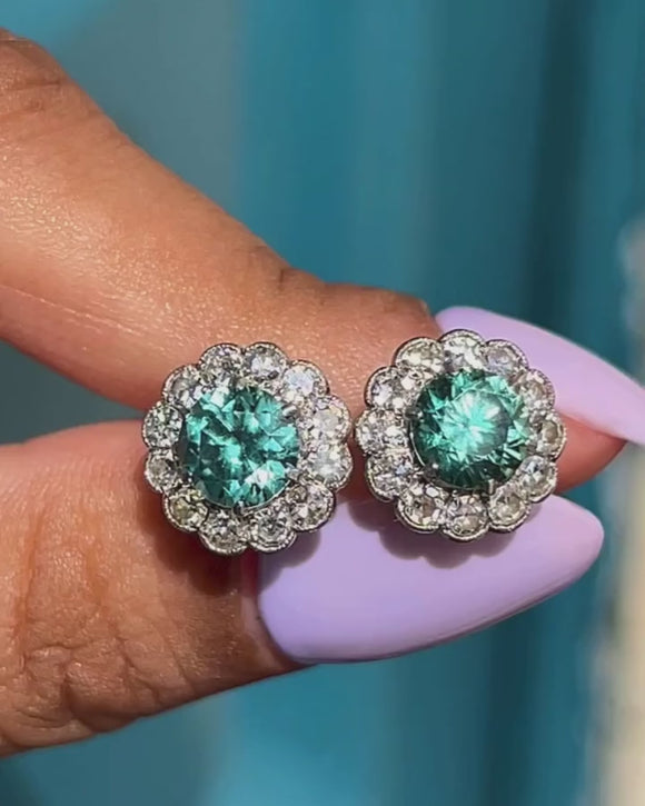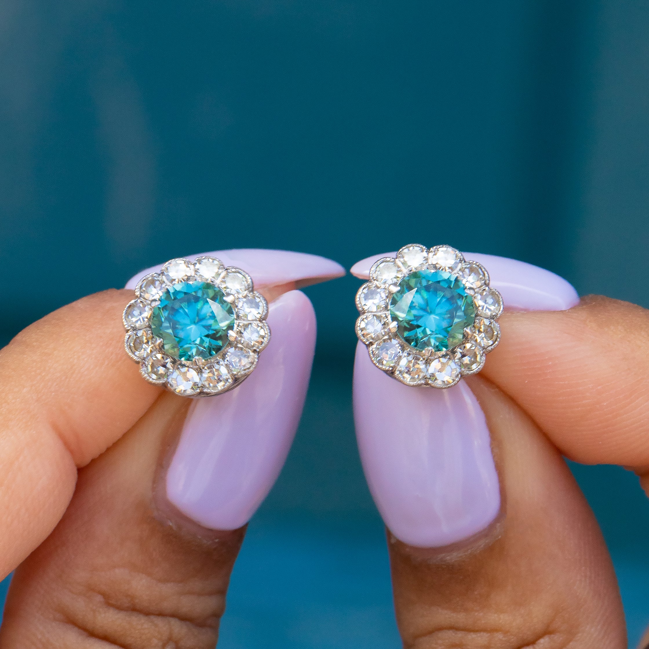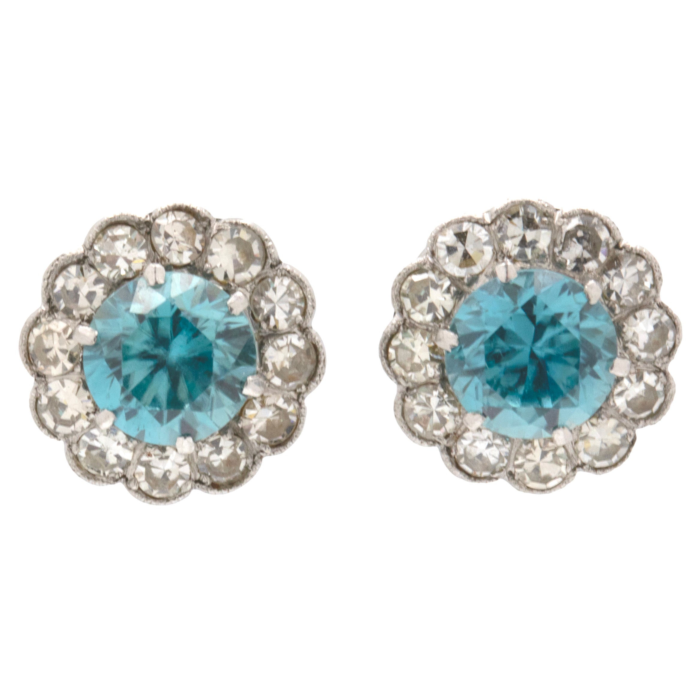 Edwardian Blue Zircon Diamond Cluster Earrings, 18ct Gold & Platinum
