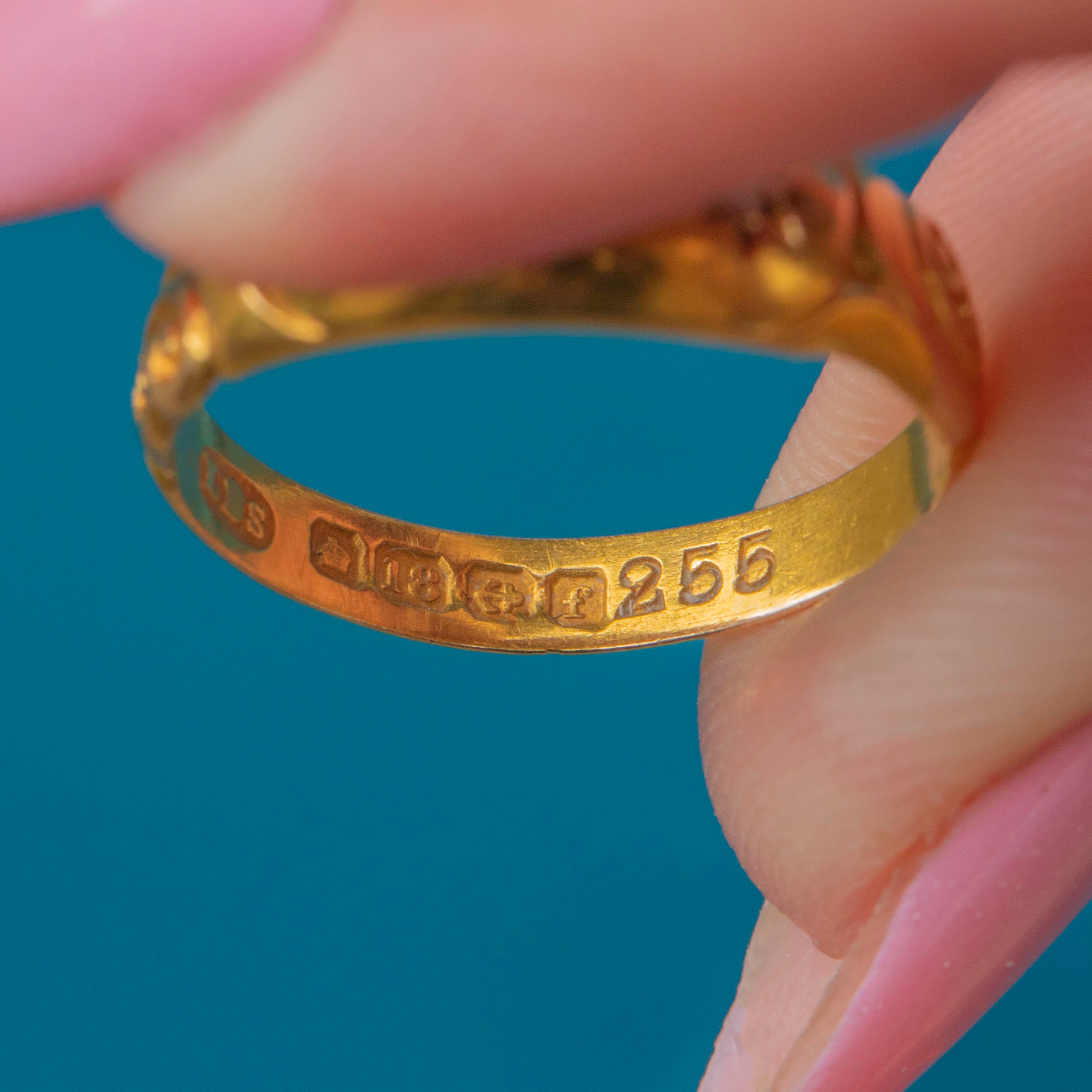 This antique gypsy ring is perfect for everyday wear and has a low profile making it ideal for adding to a curated ring stack. Offered in wonderful condition and complete with a full set of hallmarks dating to 1905, this Edwardian treasure will make a coveted addition to your collection!