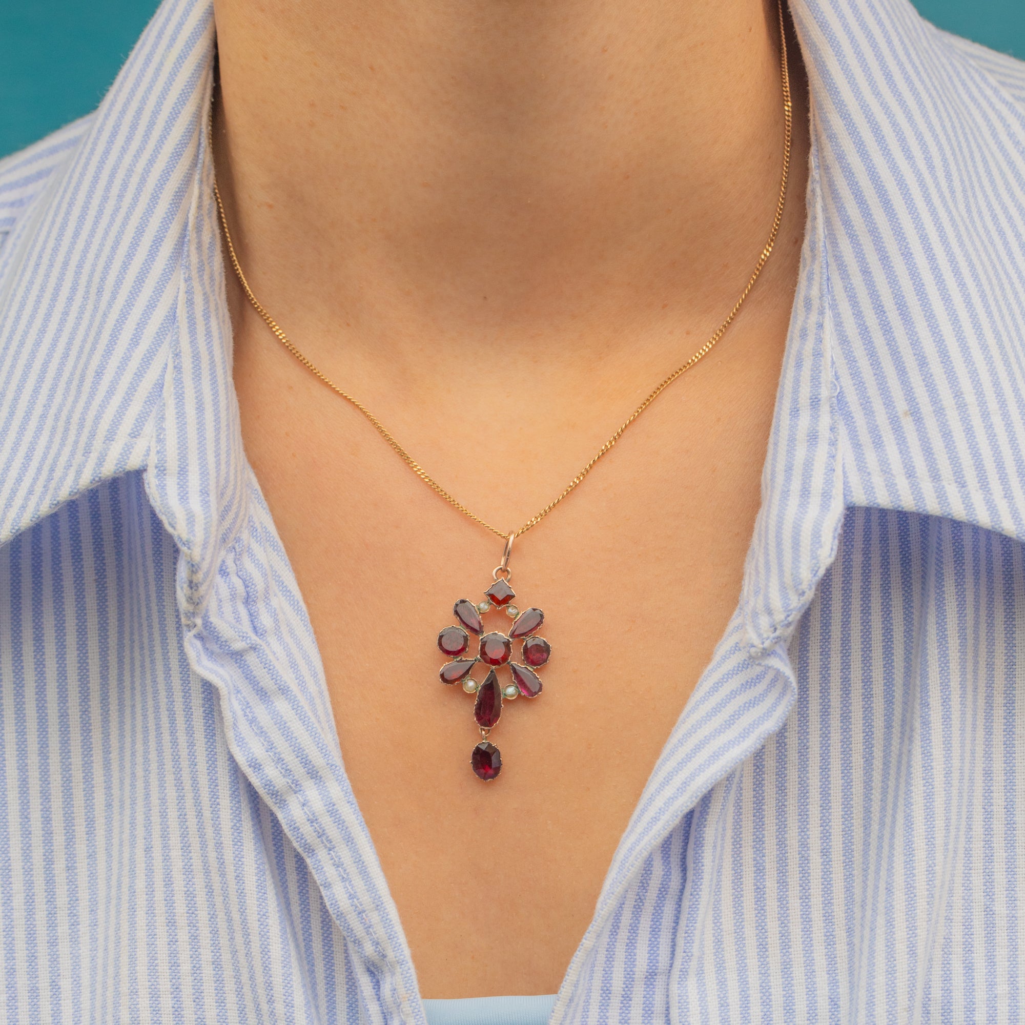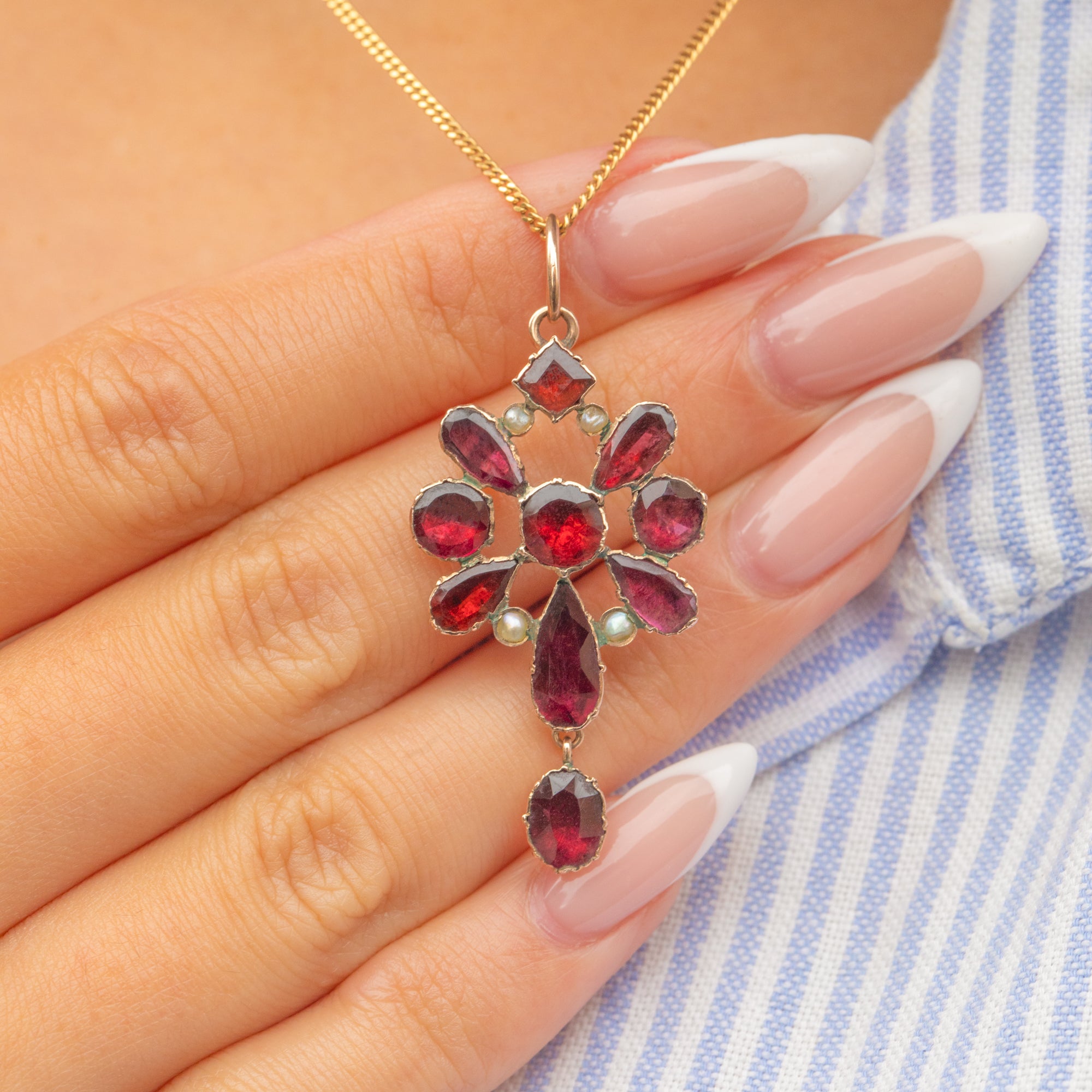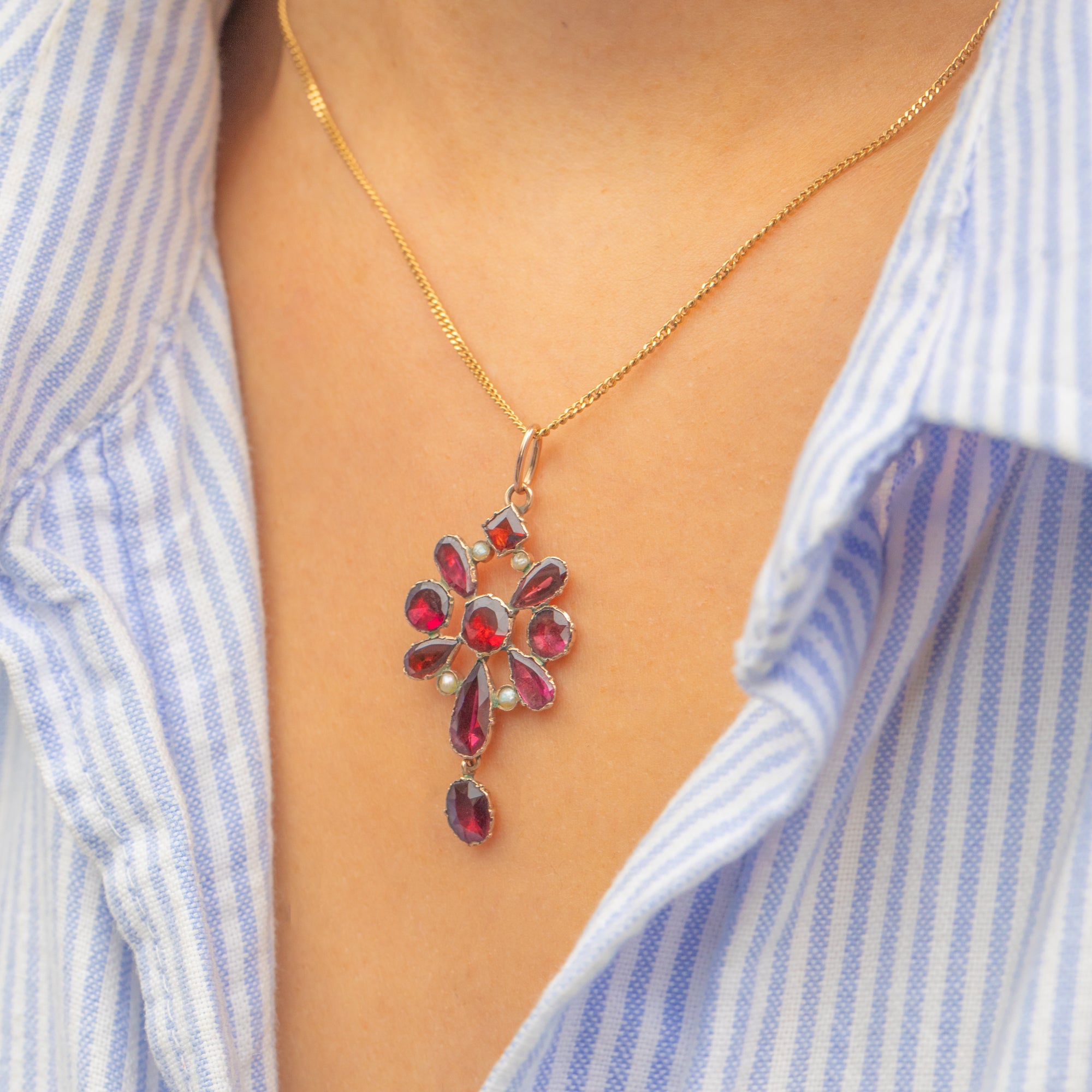 Edwardian 9ct Gold Flat-Cut Garnet & Pearl Pendant