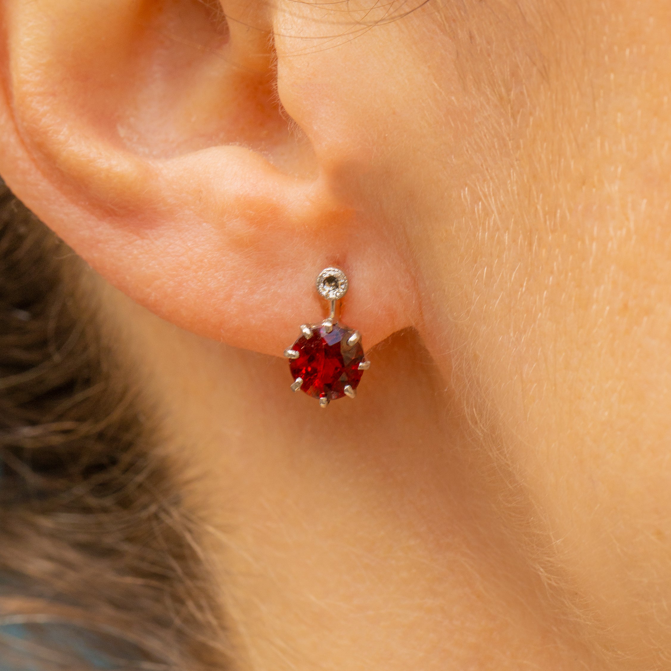 Edwardian 9ct Gold Garnet Diamond Earrings, 1.60ct
