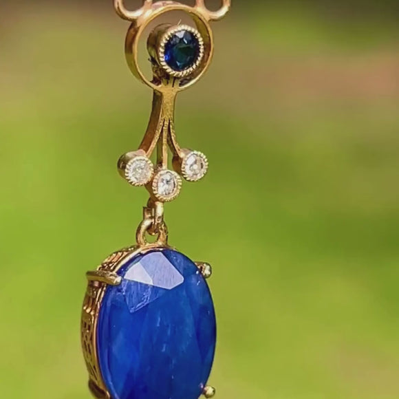 Edwardian 9ct Gold Sapphire Diamond Drop Necklace, 4.50ct Sapphire