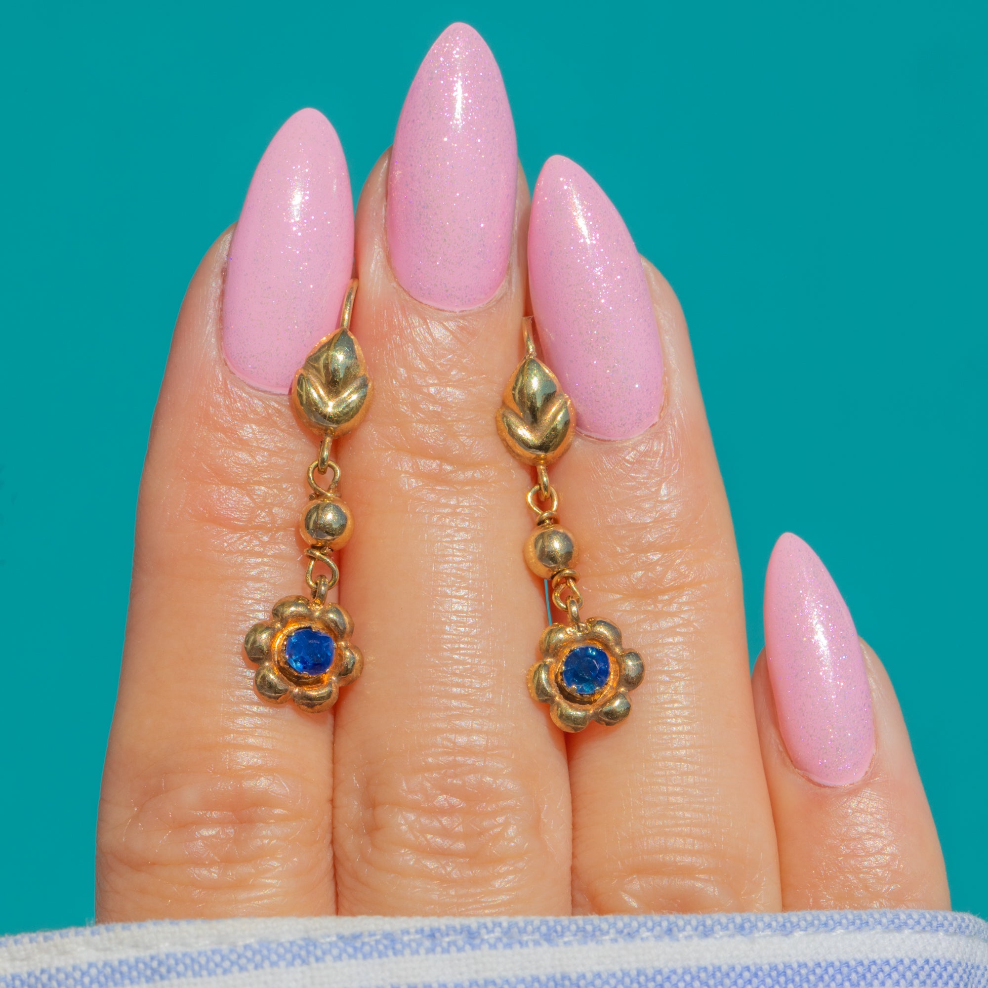 They have a lovely sense of movement when worn, and their neat scale makes them especially easy to style. Romantic and feminine, they are a beautifully wearable example of Edwardian jewellery, with the bright blue Sapphires bringing a fresh pop of colour against the warm Gold.