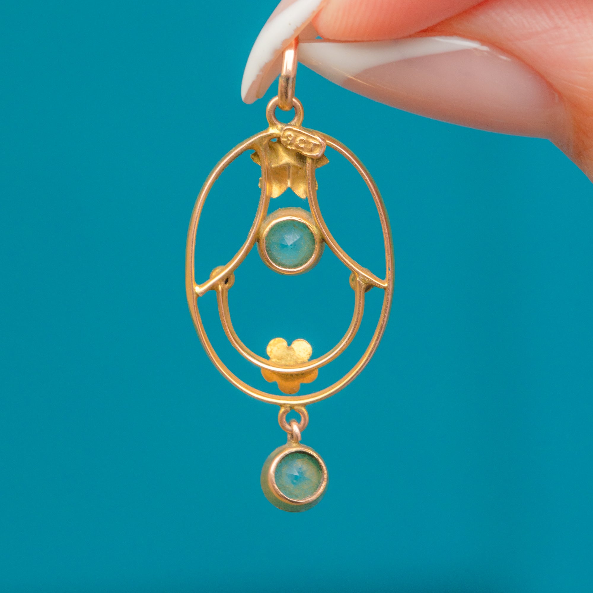 Edwardian 9ct Gold Teal Paste Pendant