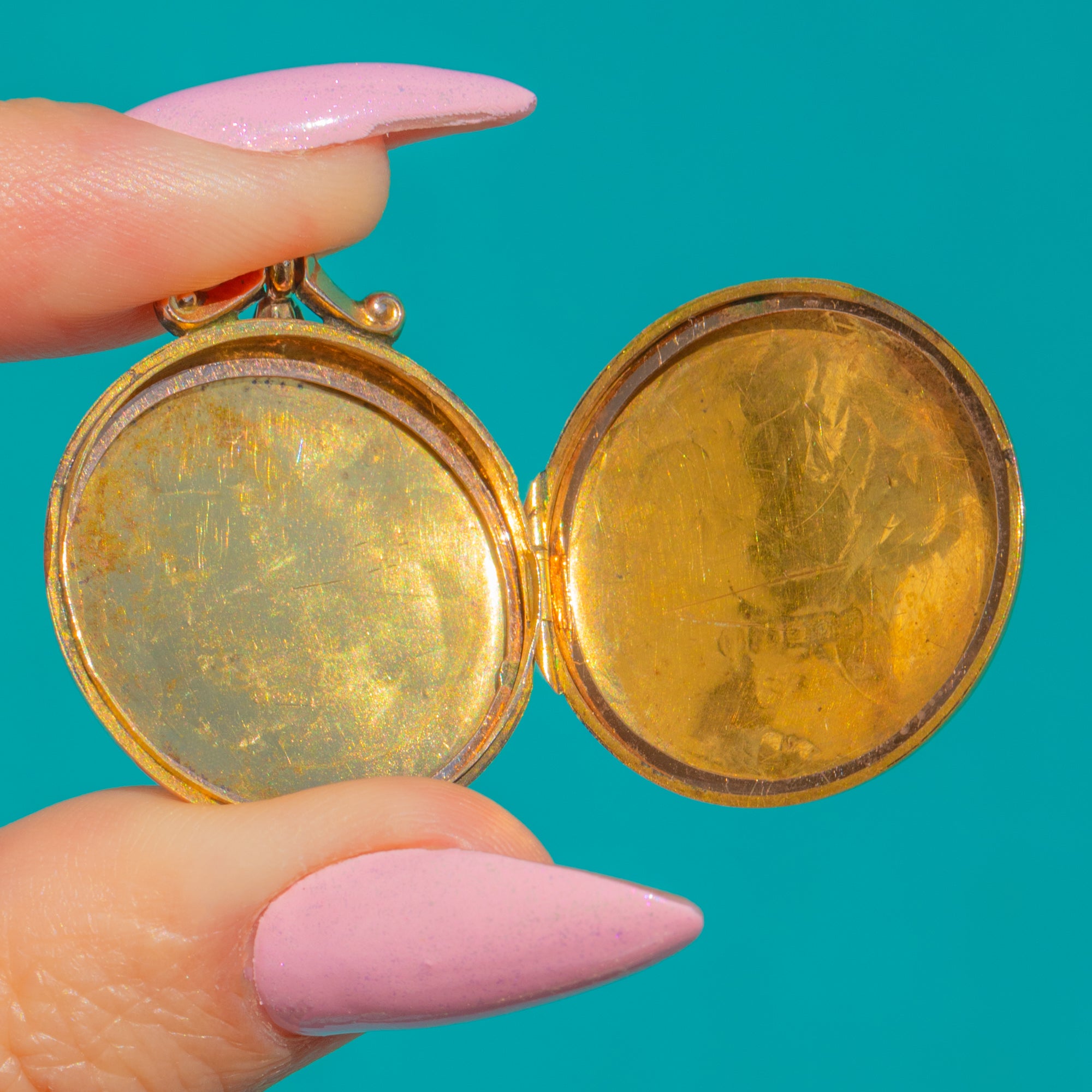 Edwardian Engraved Round 9ct Gold Locket c.1908