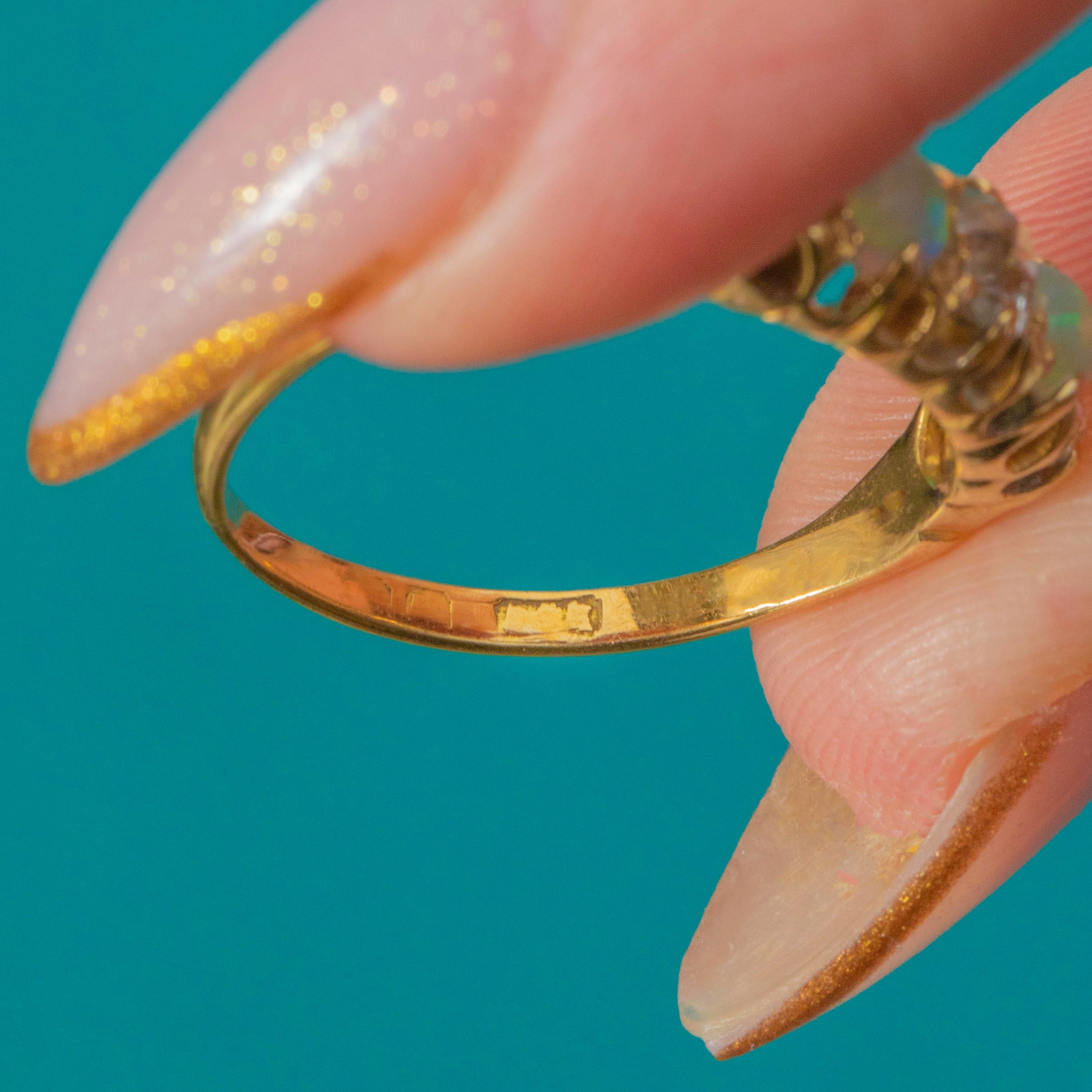 18ct Gold Opal Diamond Five Stone Boat Ring