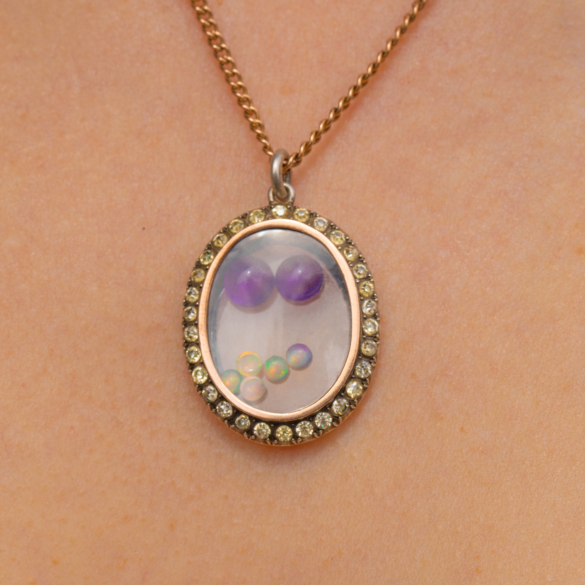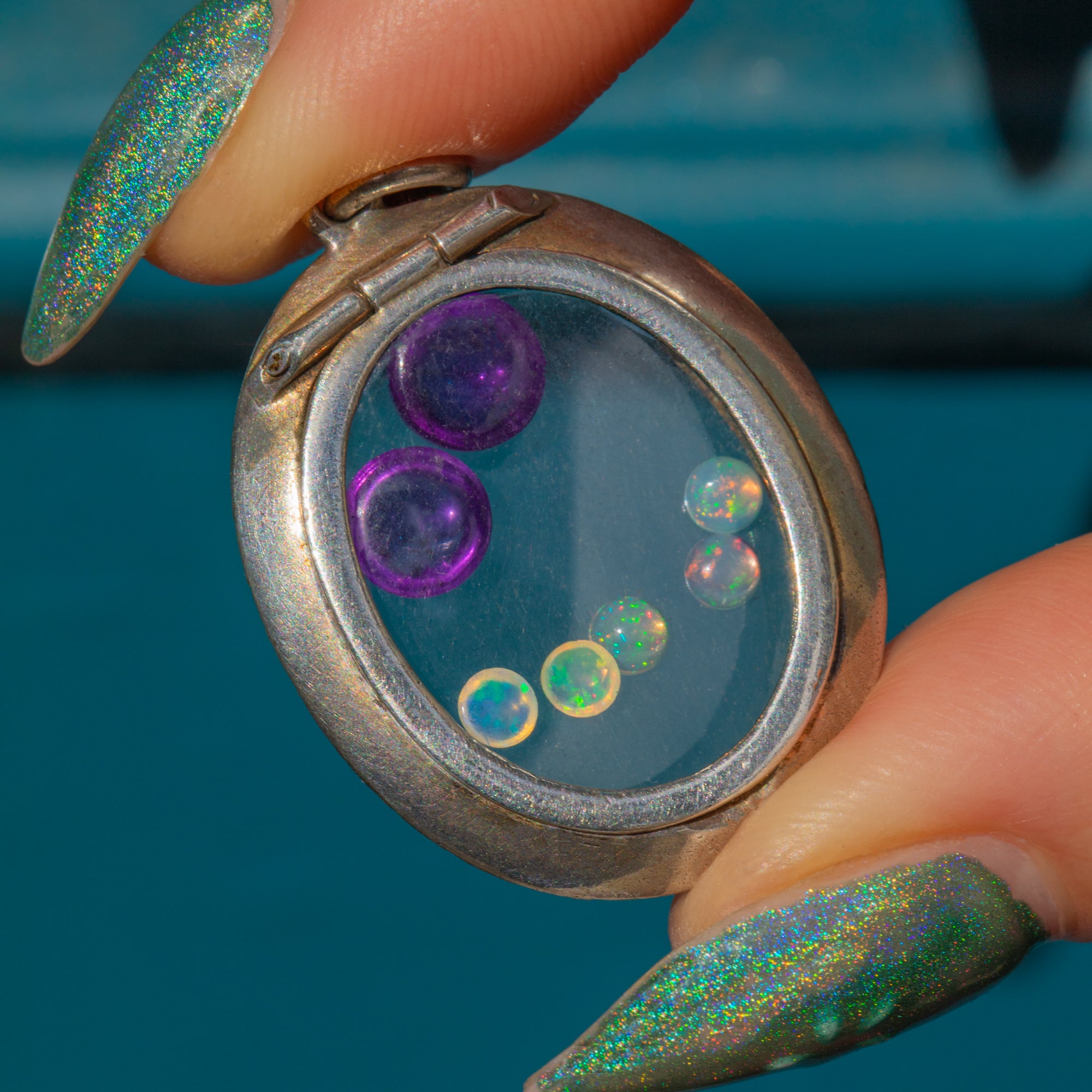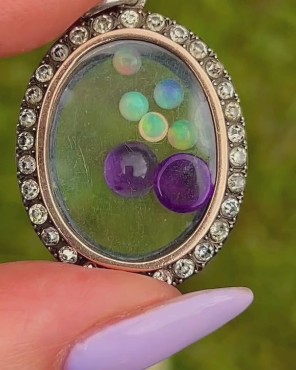 Edwardian Paste Oval Shaker Locket, Loose Opals & Amethysts