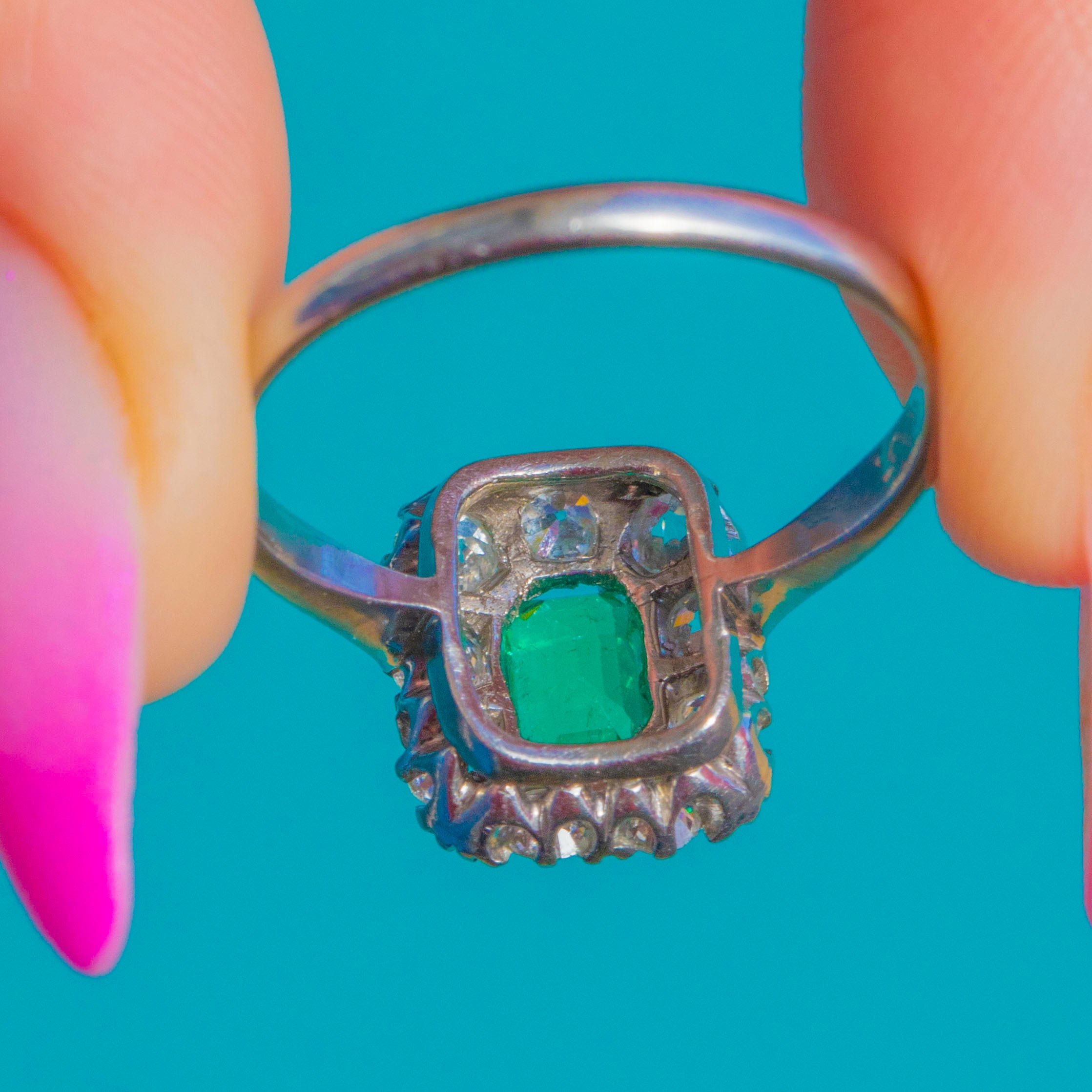 Edwardian Platinum Emerald Diamond Cluster Ring c.1905