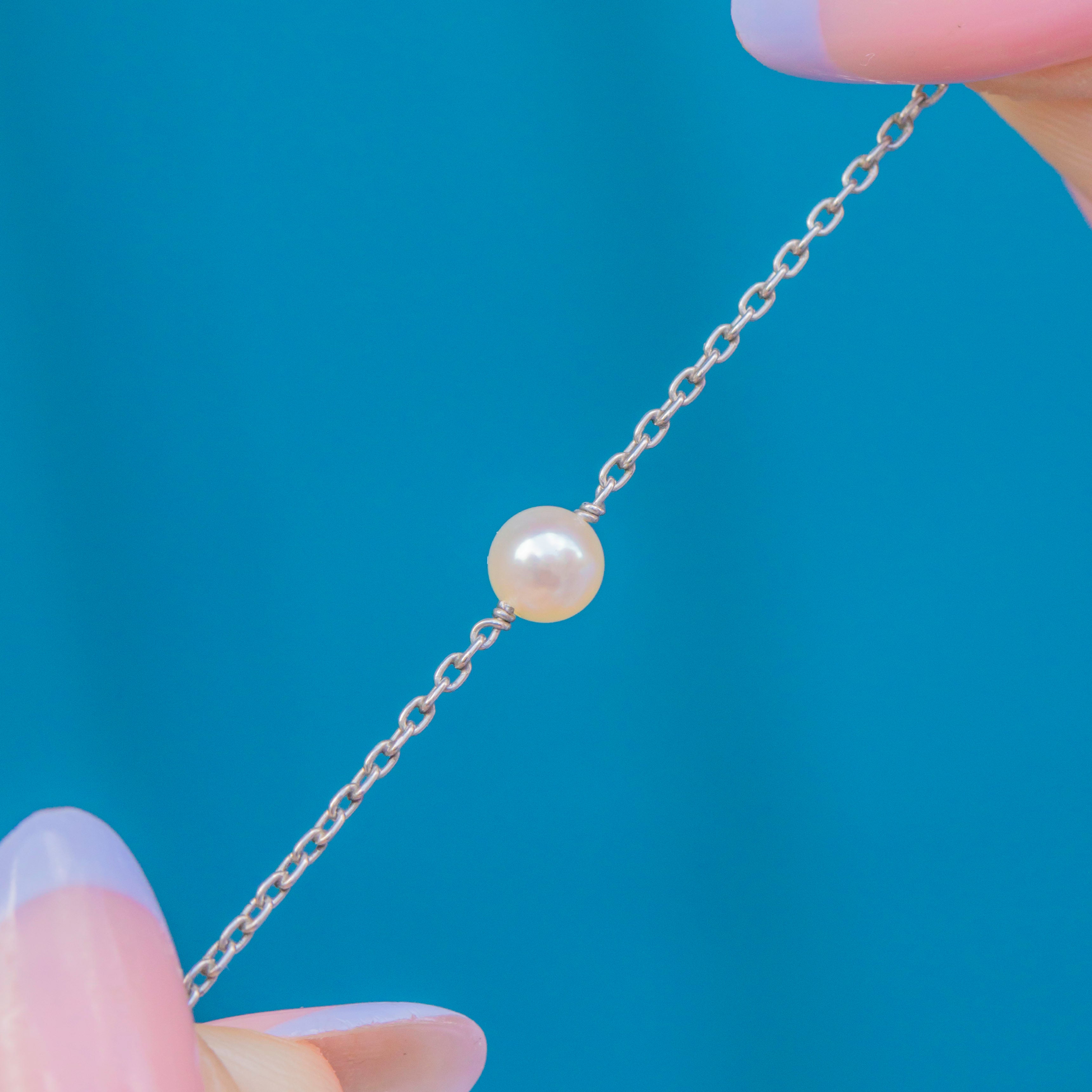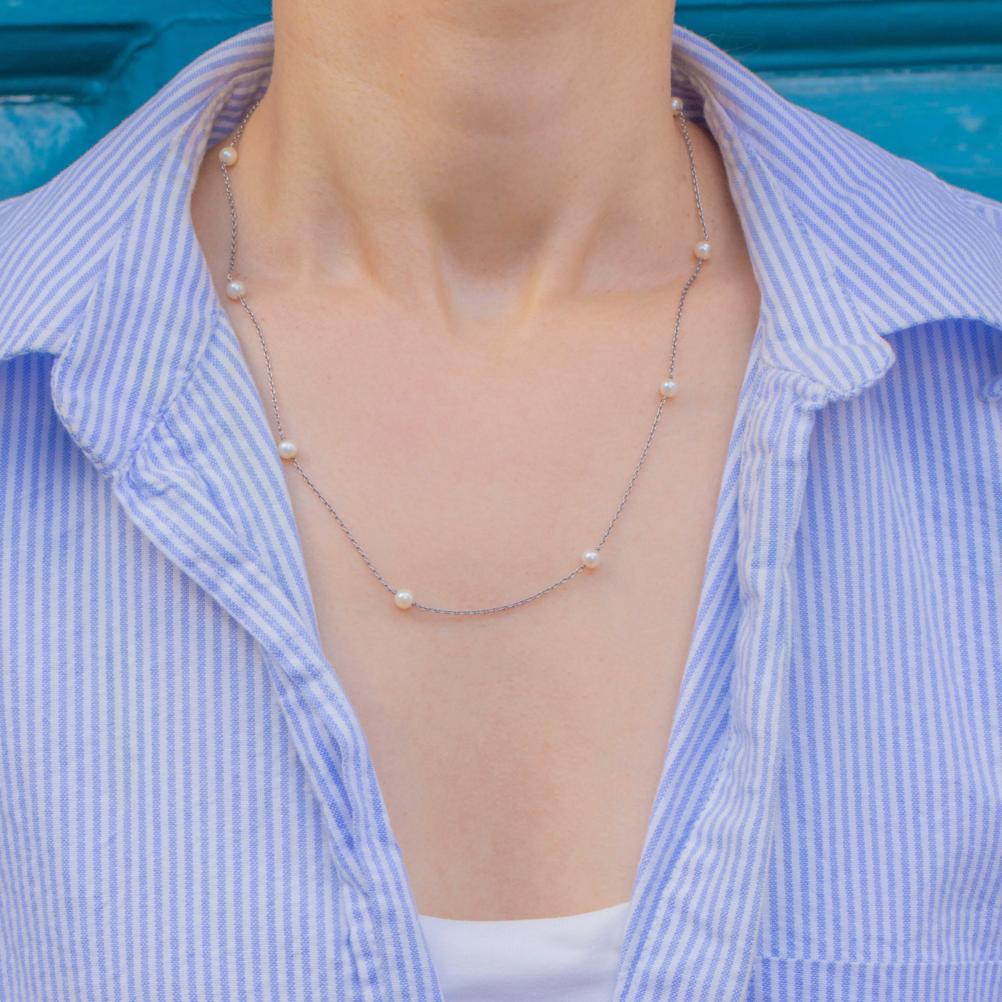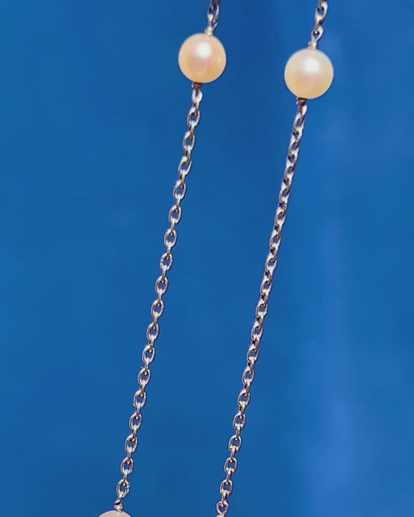 Edwardian Platinum Pearl Station Necklace with Bolt Ring Clasp