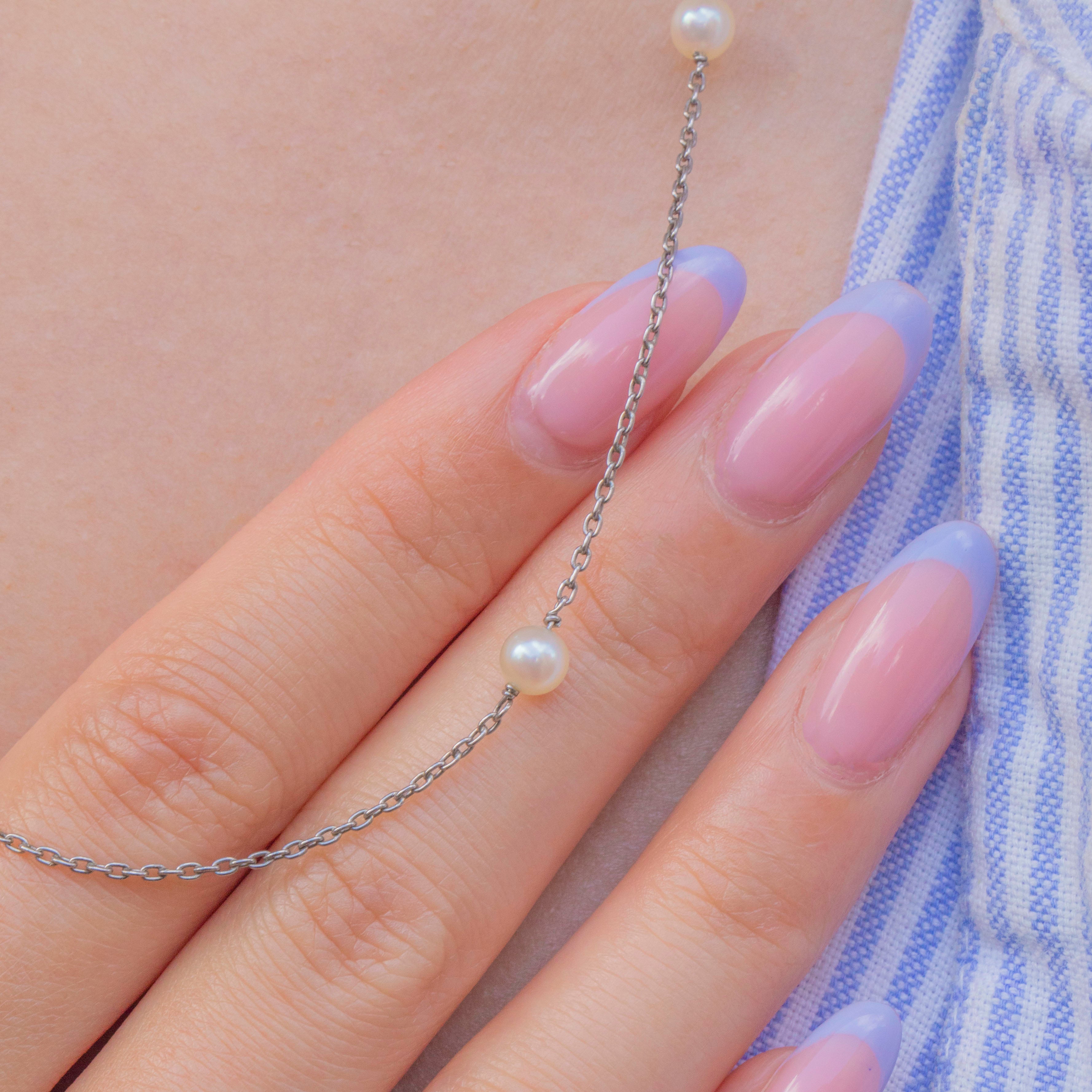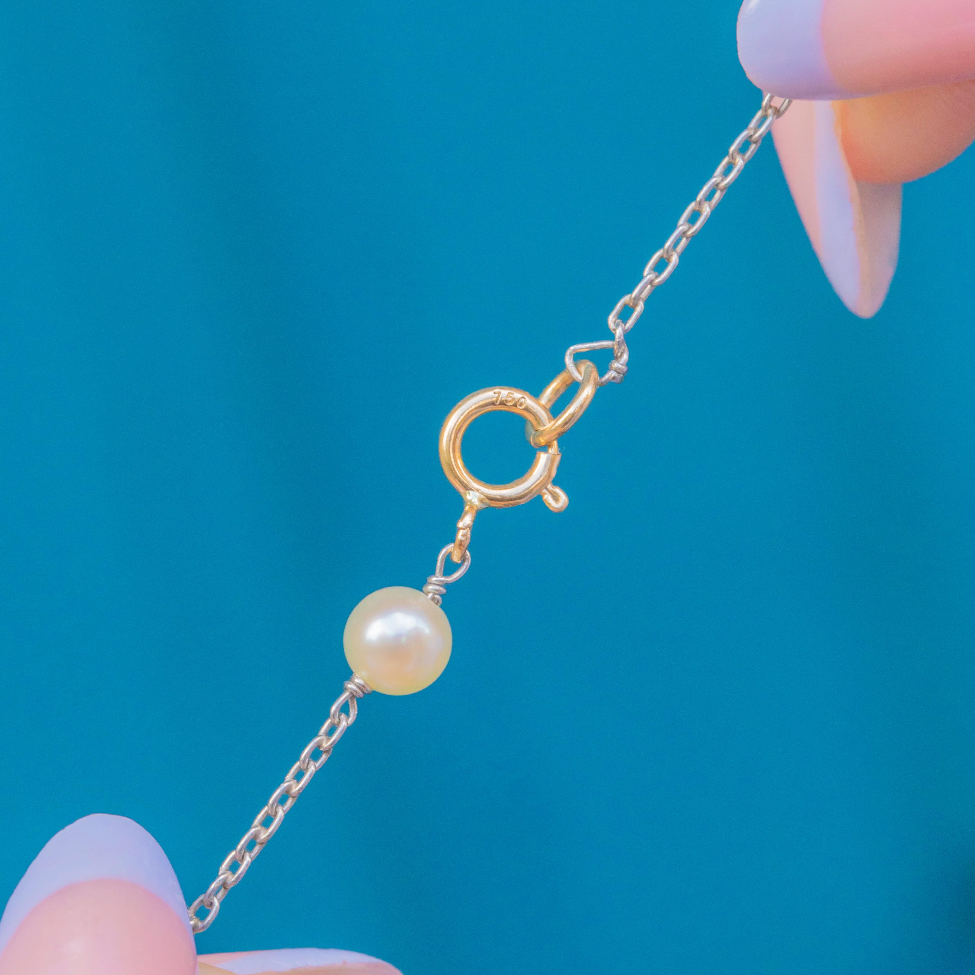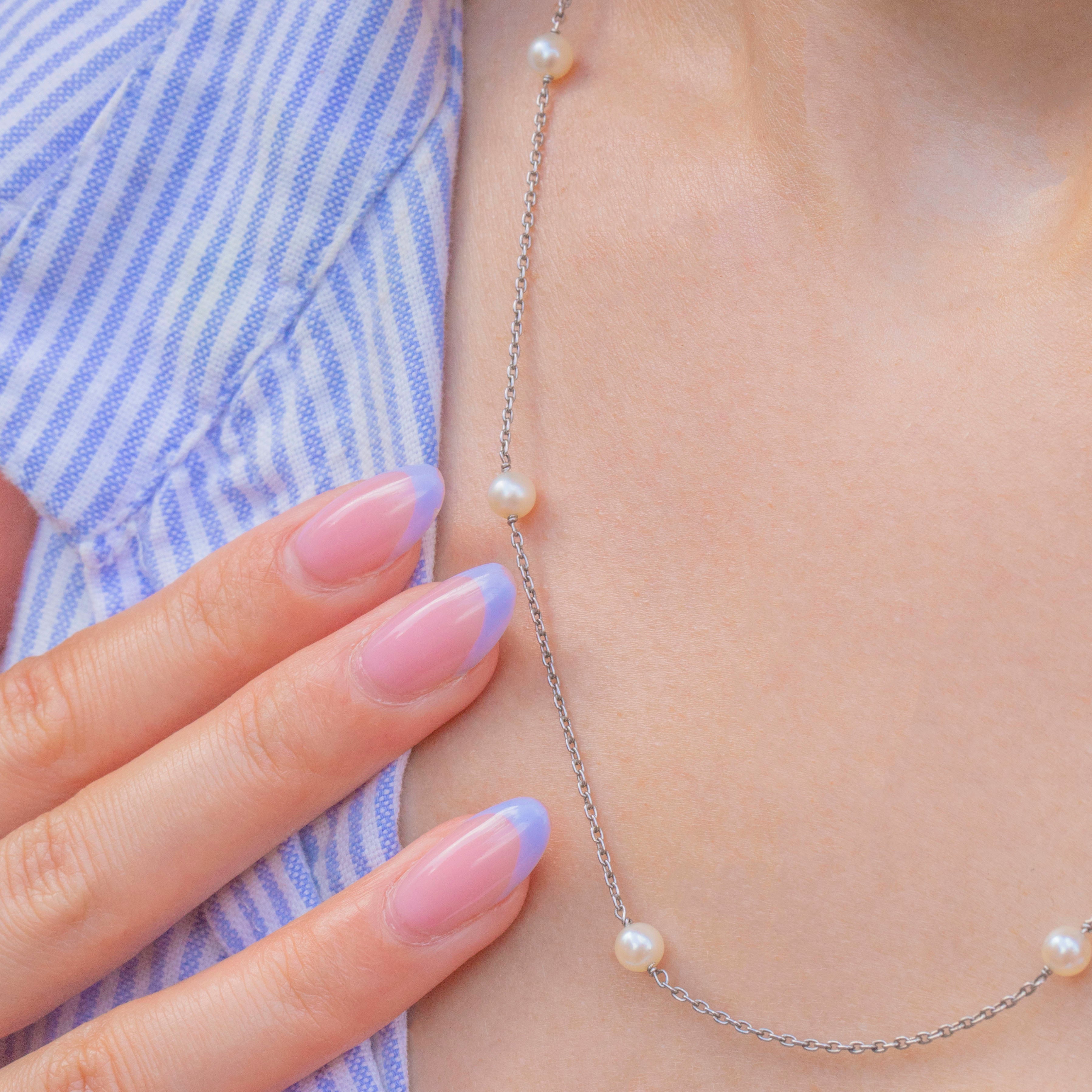 Edwardian Platinum Pearl Station Necklace with Bolt Ring Clasp