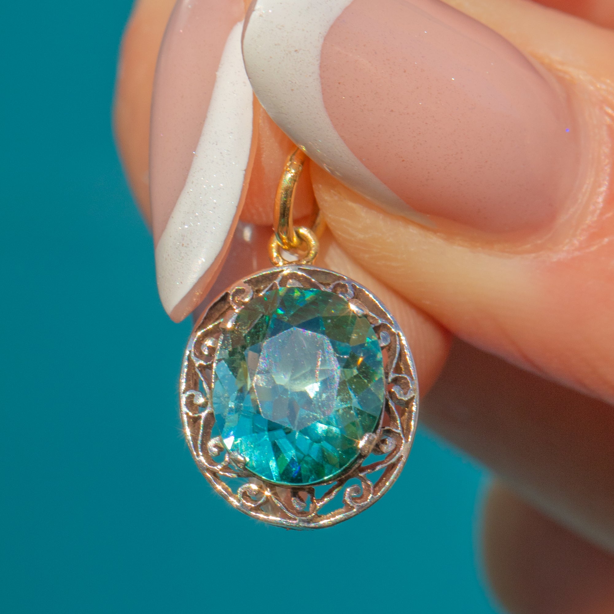 This Edwardian Silver & 9ct Gold Blue Zircon charm is an antique delight!