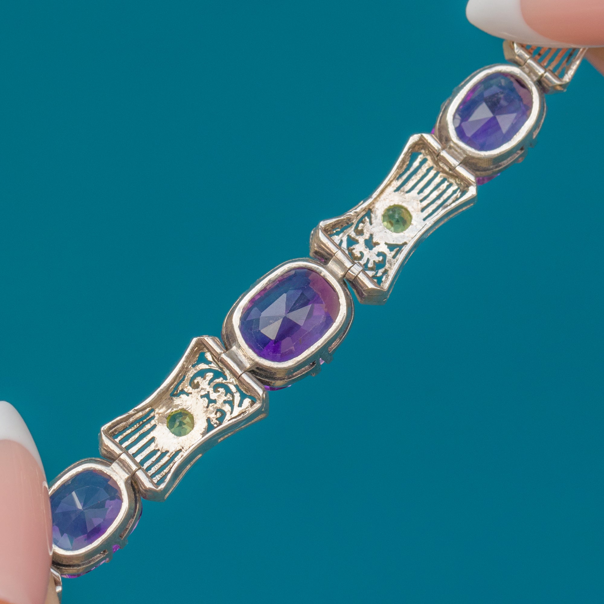 Edwardian Suffragette Amethyst & Peridot Silver Bracelet 7"