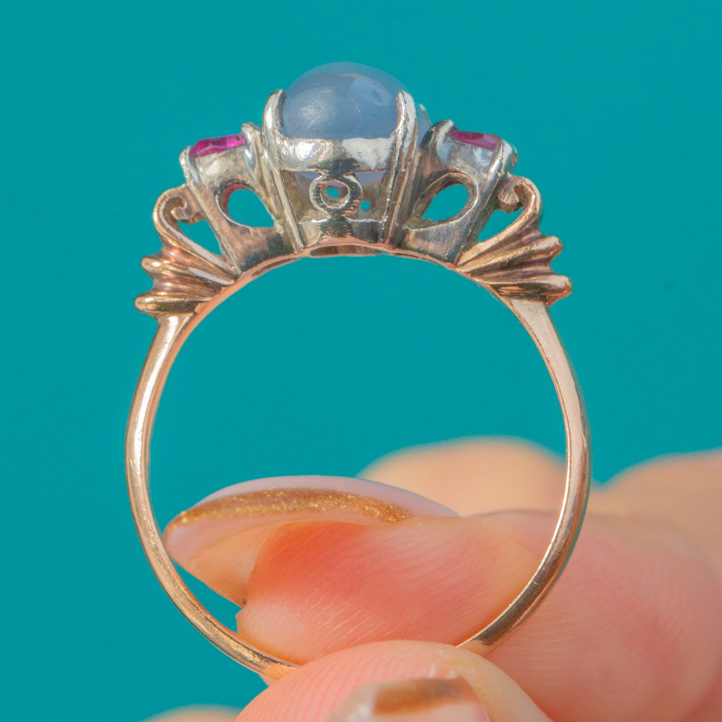 European Art Deco Star Sapphire & Ruby Ring 9ct Gold