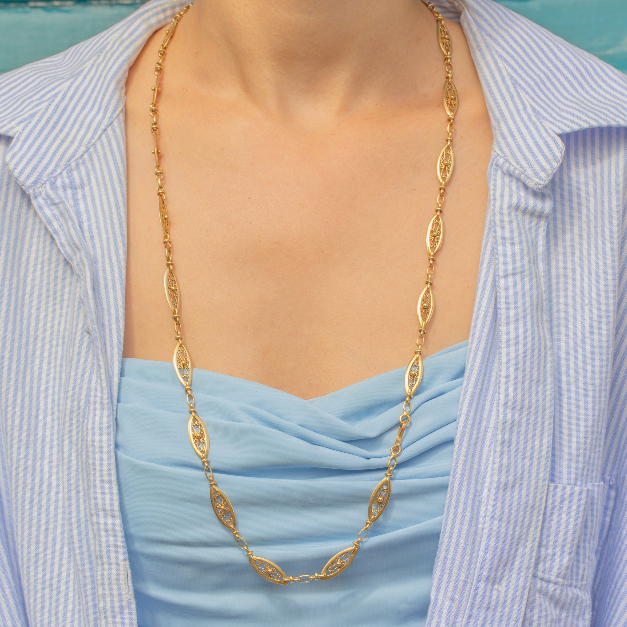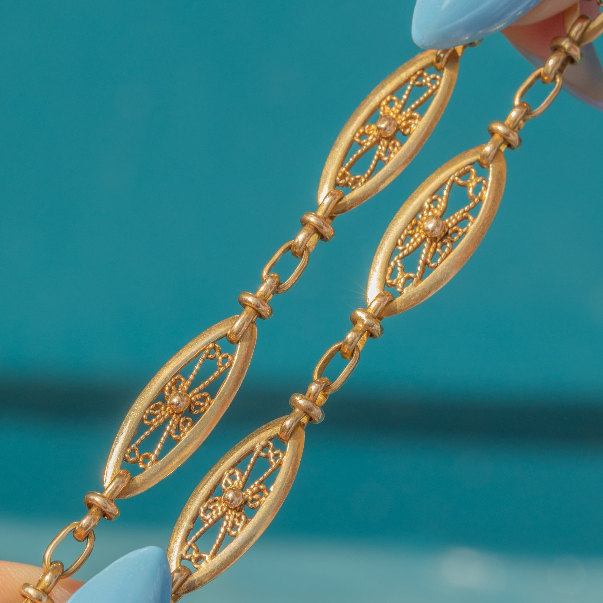 Antique French 18ct Gold Filigree Lozenge Longuard Chain, 28"
