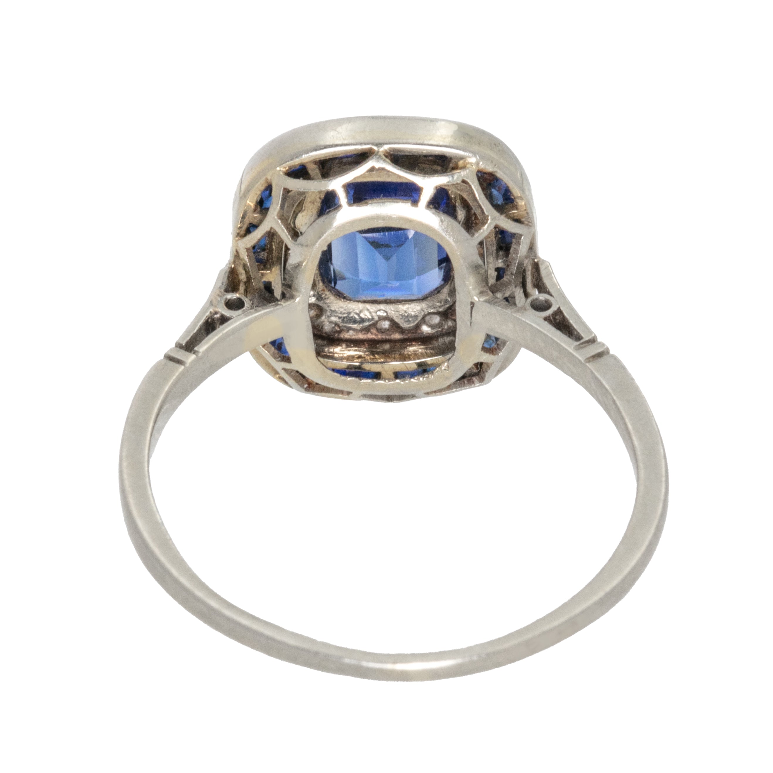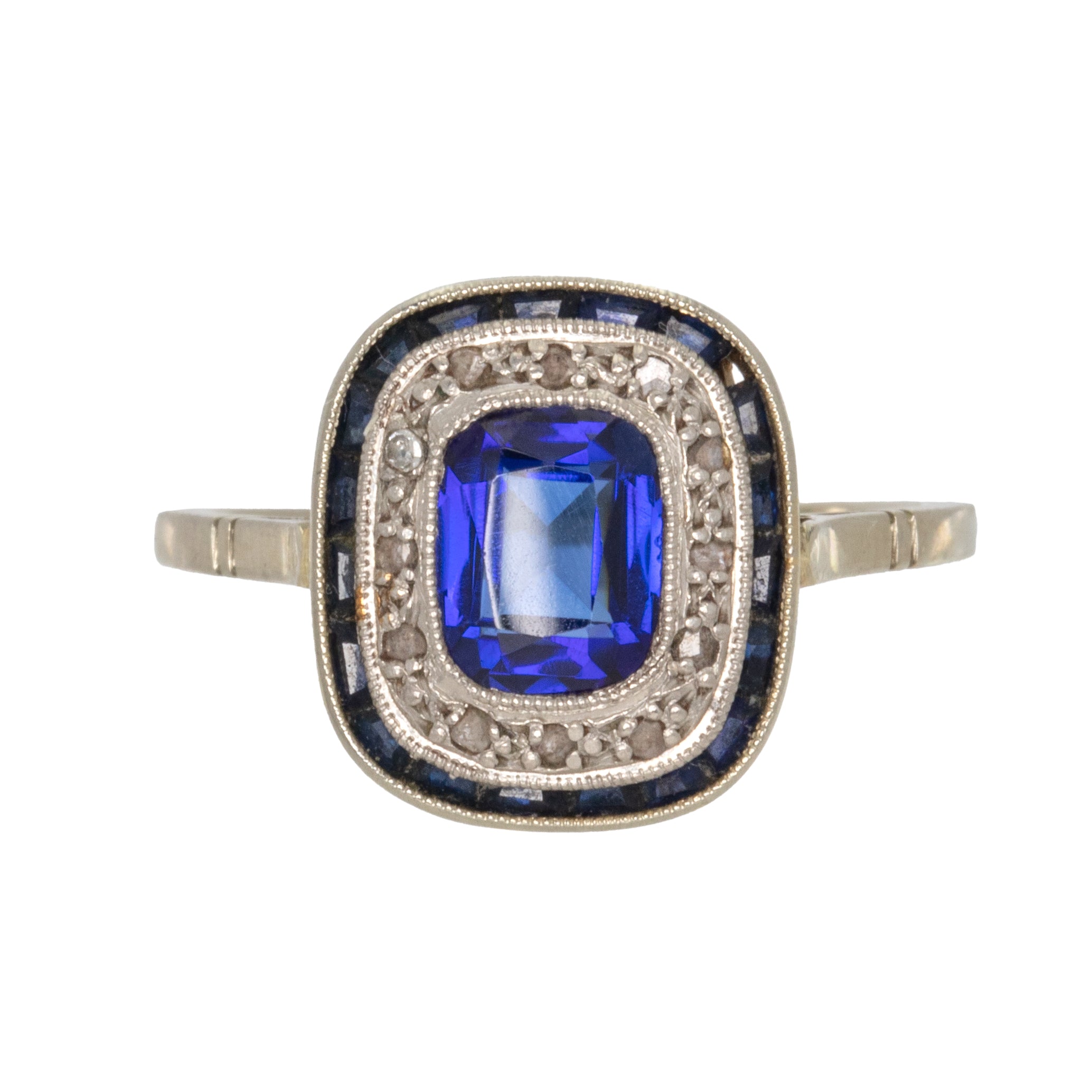 French Art Deco 18ct Gold Sapphire Diamond Cluster Ring - Art Deco Target Ring