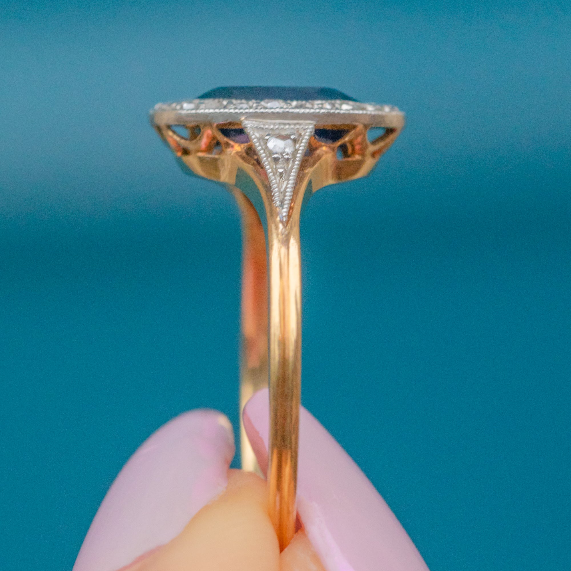 French Art Deco 18ct Sapphire Cluster Diamond Ring, 1.50ct Sapphire