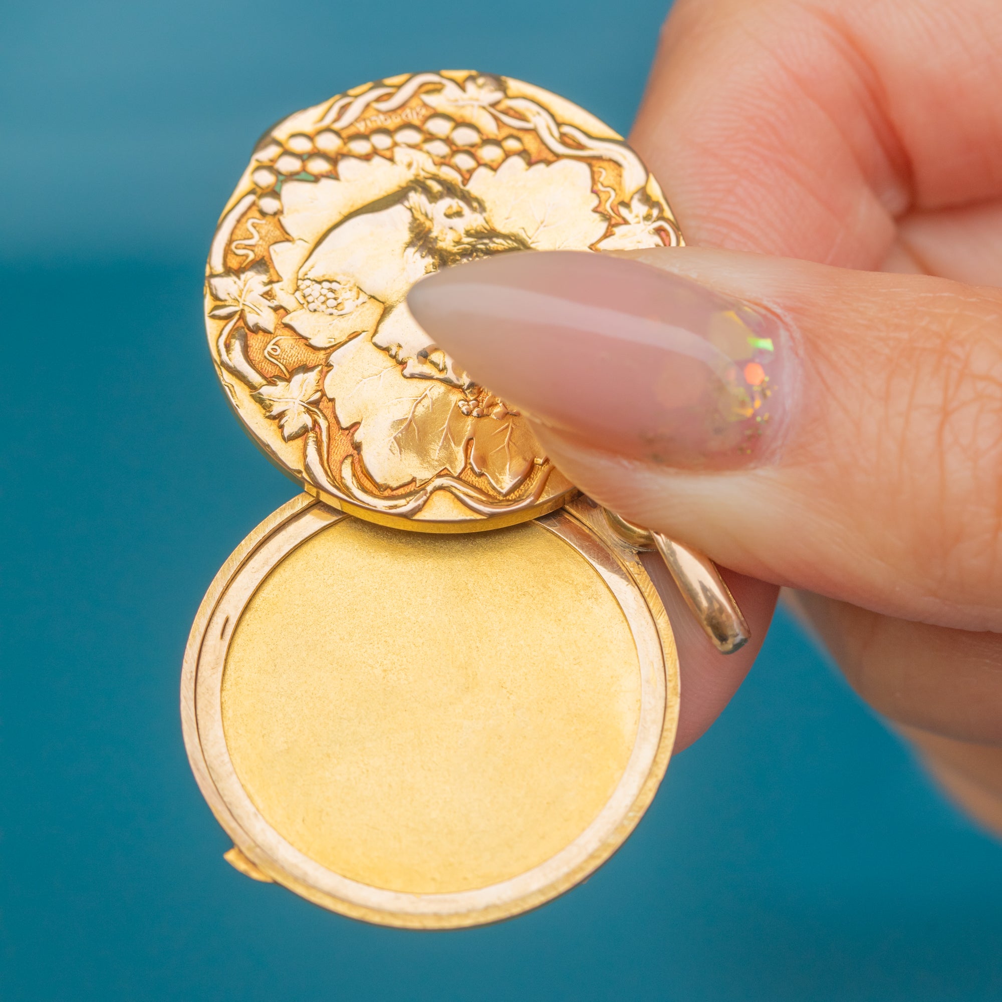 French Art Nouveau 18ct Gold "Bacchus" God of Wine Locket