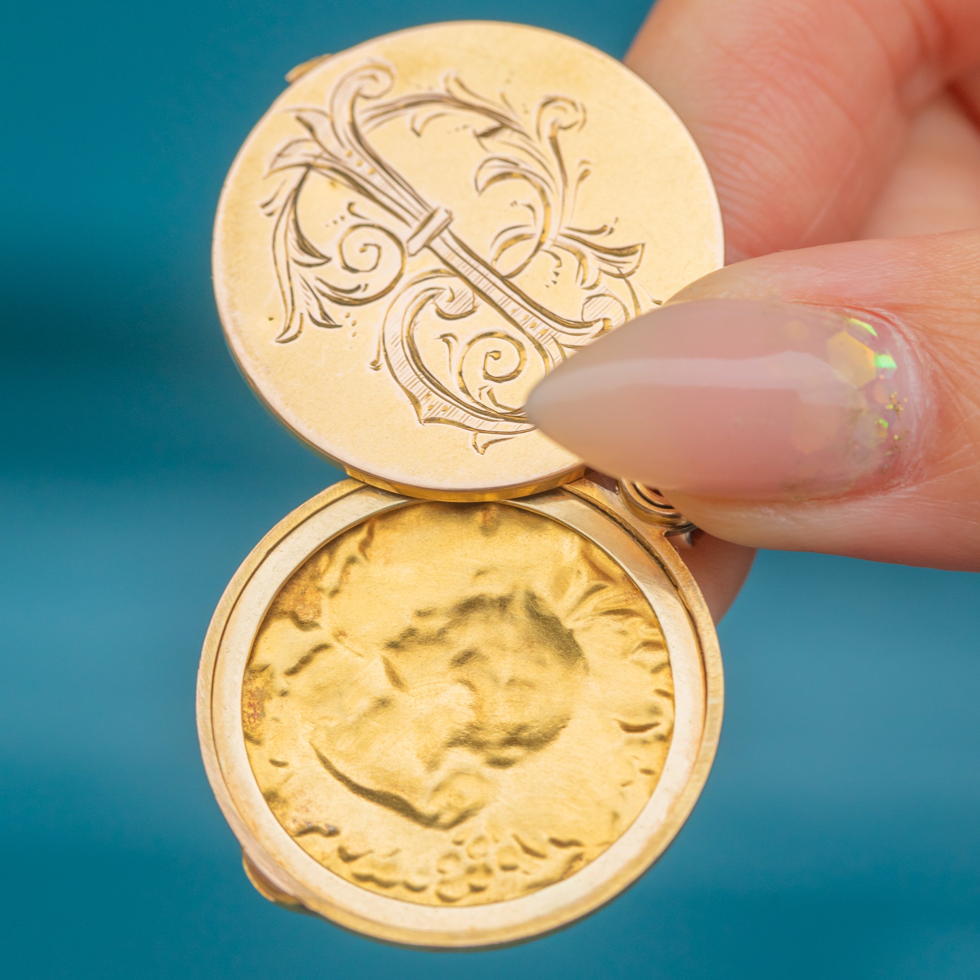 EXCELLENT: Crisp Art Nouveau relief with only the lightest age-consistent surface wear under magnification. Both interior frames are intact and fit neatly. Hinge and closure are sound, and the Gold retains a bright, even colour.