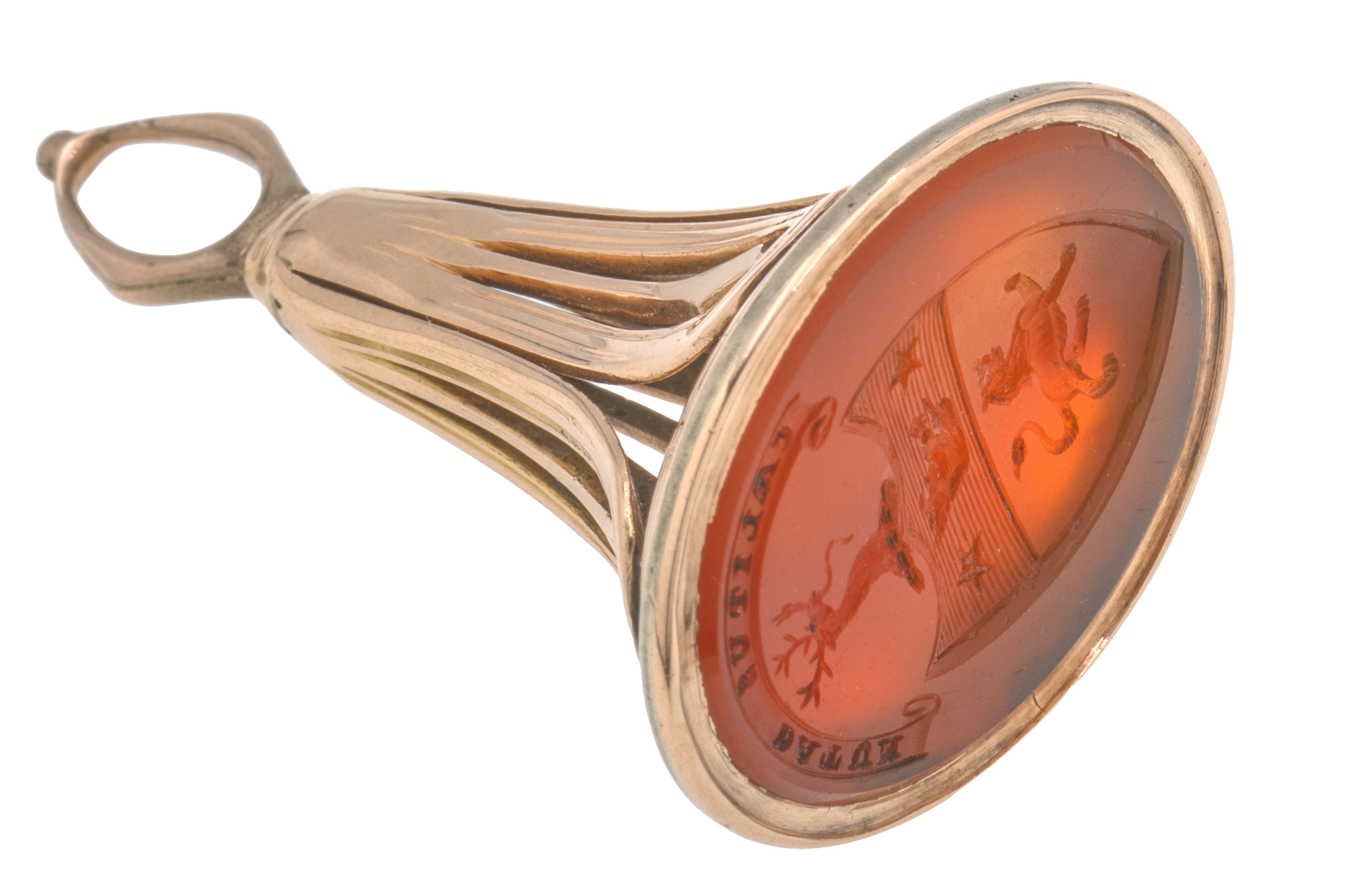 Georgian 9ct Gold Carnelian Intaglio Fob Pendant, "Given by God"