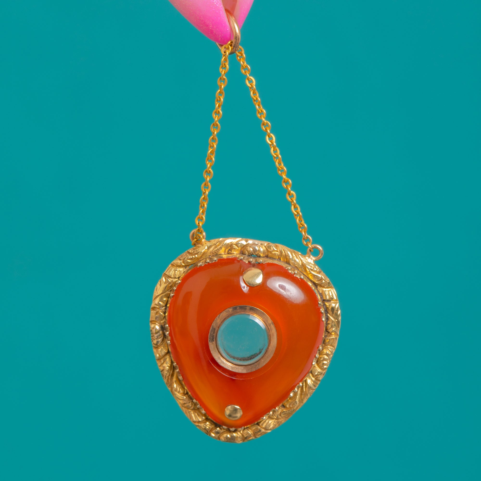 Georgian 15ct Gold Carnelian Heart Locket Pendant, c.1820