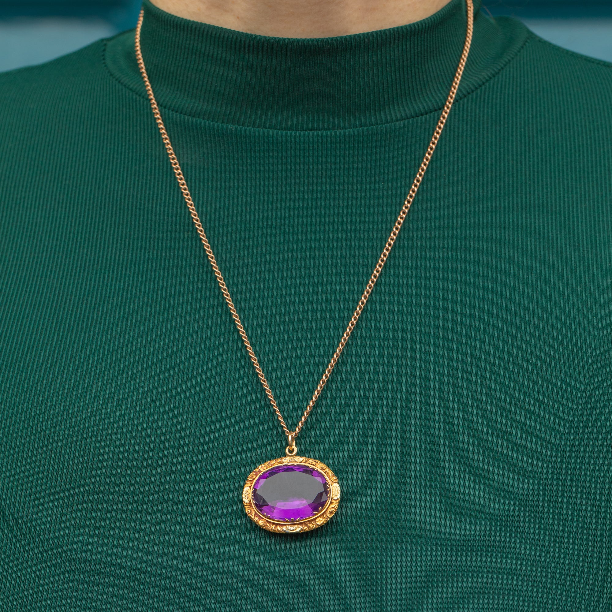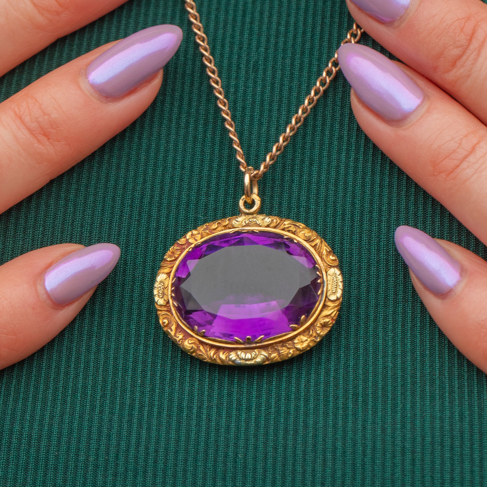 Add a pop of colour to your décolletage with this Georgian 18ct Gold chased Amethyst pendant!