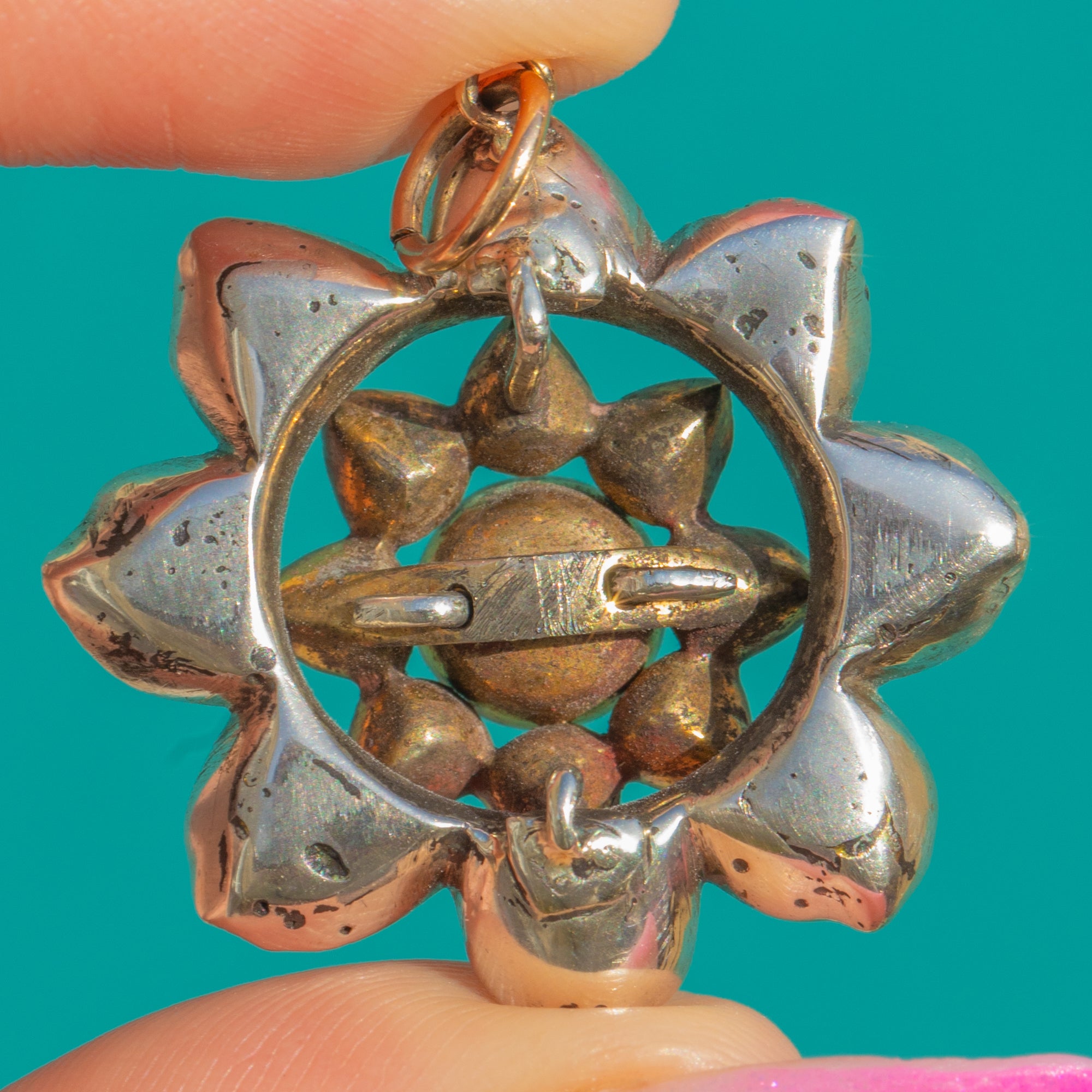 Beautifully decorative and highly wearable, this jewel offers the charm of early craftsmanship with the presence of a statement cluster. A discreet pin fitting to the reverse allows for versatile wear as a brooch or pendant, making it a timeless companion for both everyday elegance and evening drama.