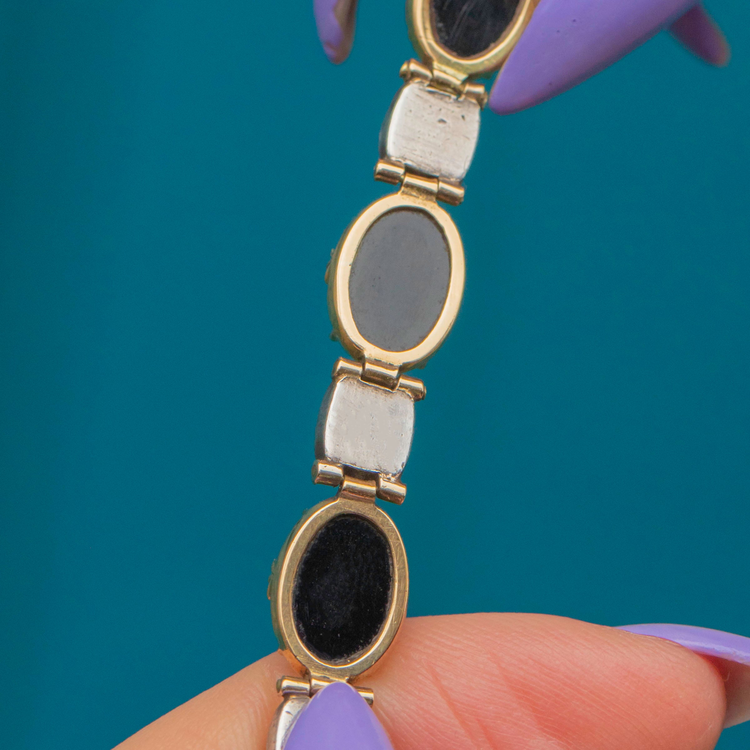 We are obsessed with this Georgian 18ct Gold French Jet bracelet!