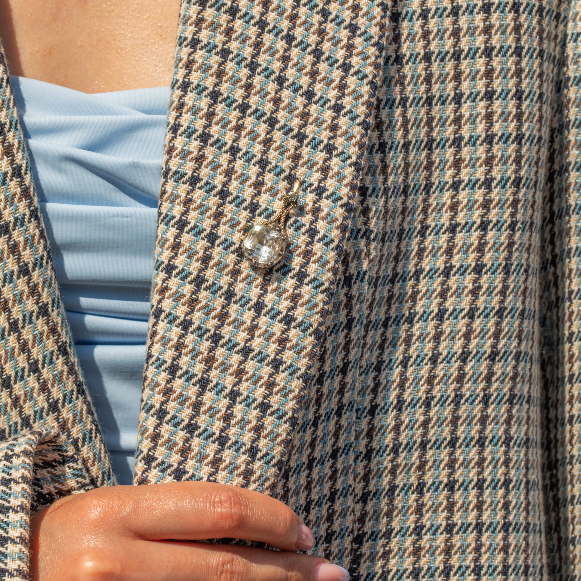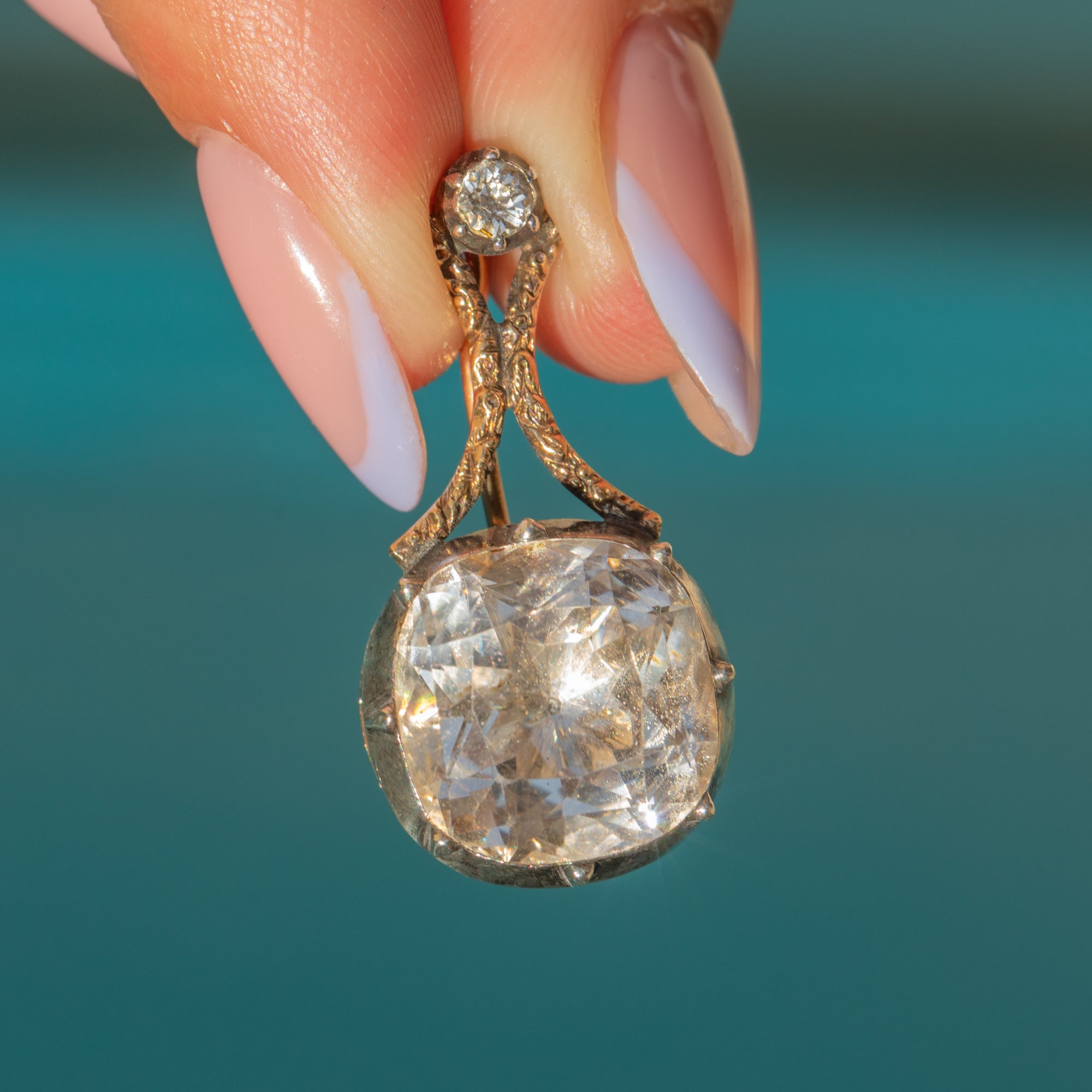 MATERIALS: Tests as 18ct Gold, Silver settings, Rock Crystal.