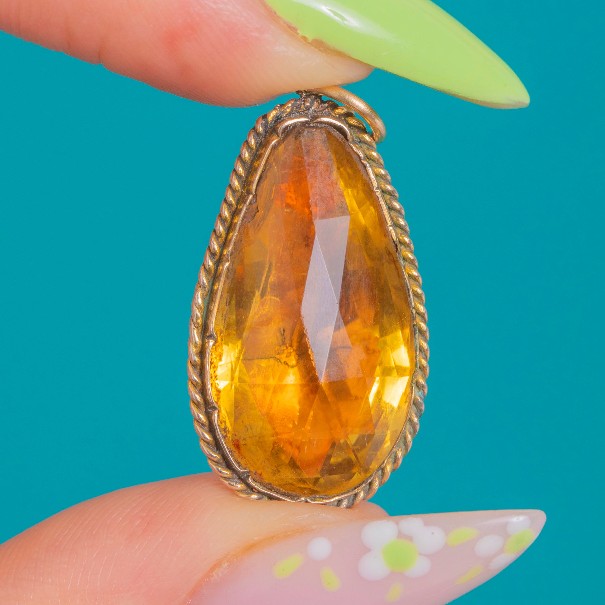 Georgian 9ct Gold and Silver Foiled Citrine Pear Charm