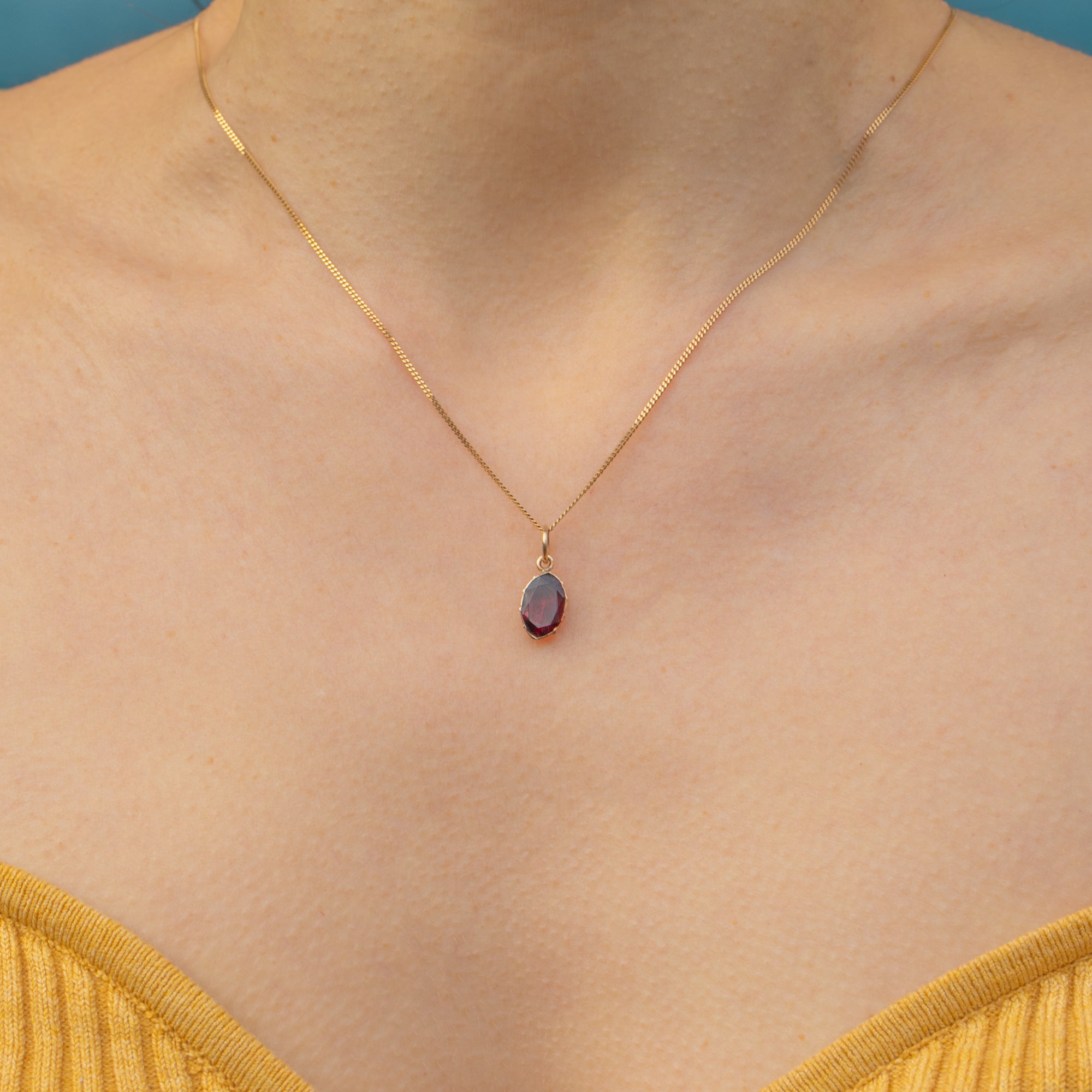 The 0.80ct Garnet is displayed within a saturated, honey-hued 9ct Gold piecrust setting which perfectly complements the berry red Garnet - she's a beauty!