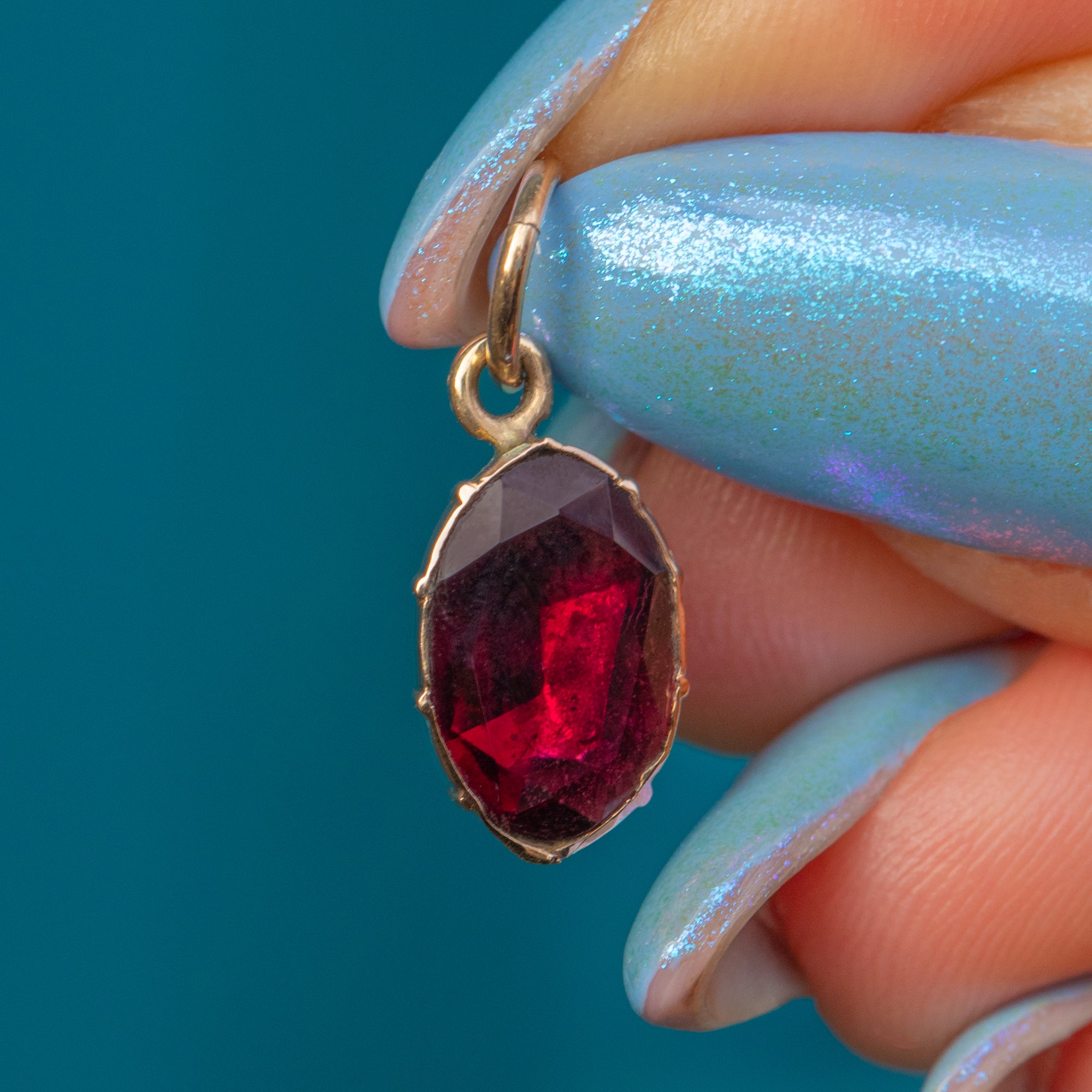 We're obsessed with this Georgian 9ct Gold flat-cut Garnet charm! Boasting dark cherry hues, this tantalising treat looks good enough to eat.