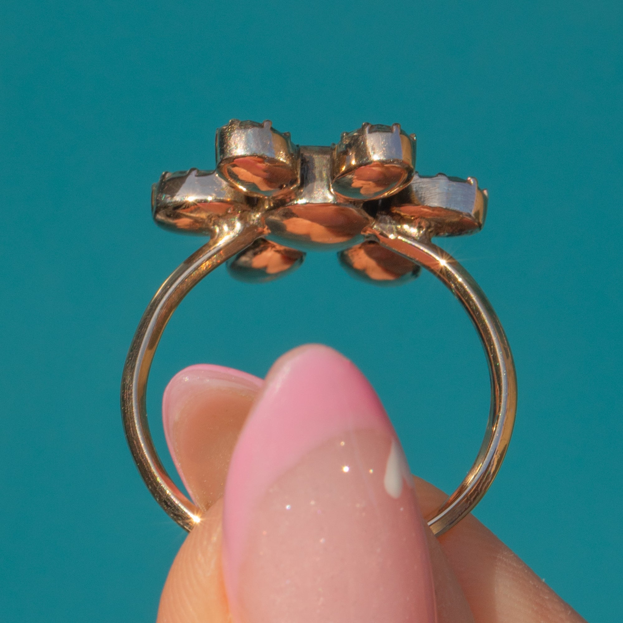 Georgian 9ct Gold Flat-Cut Garnet Flower Ring