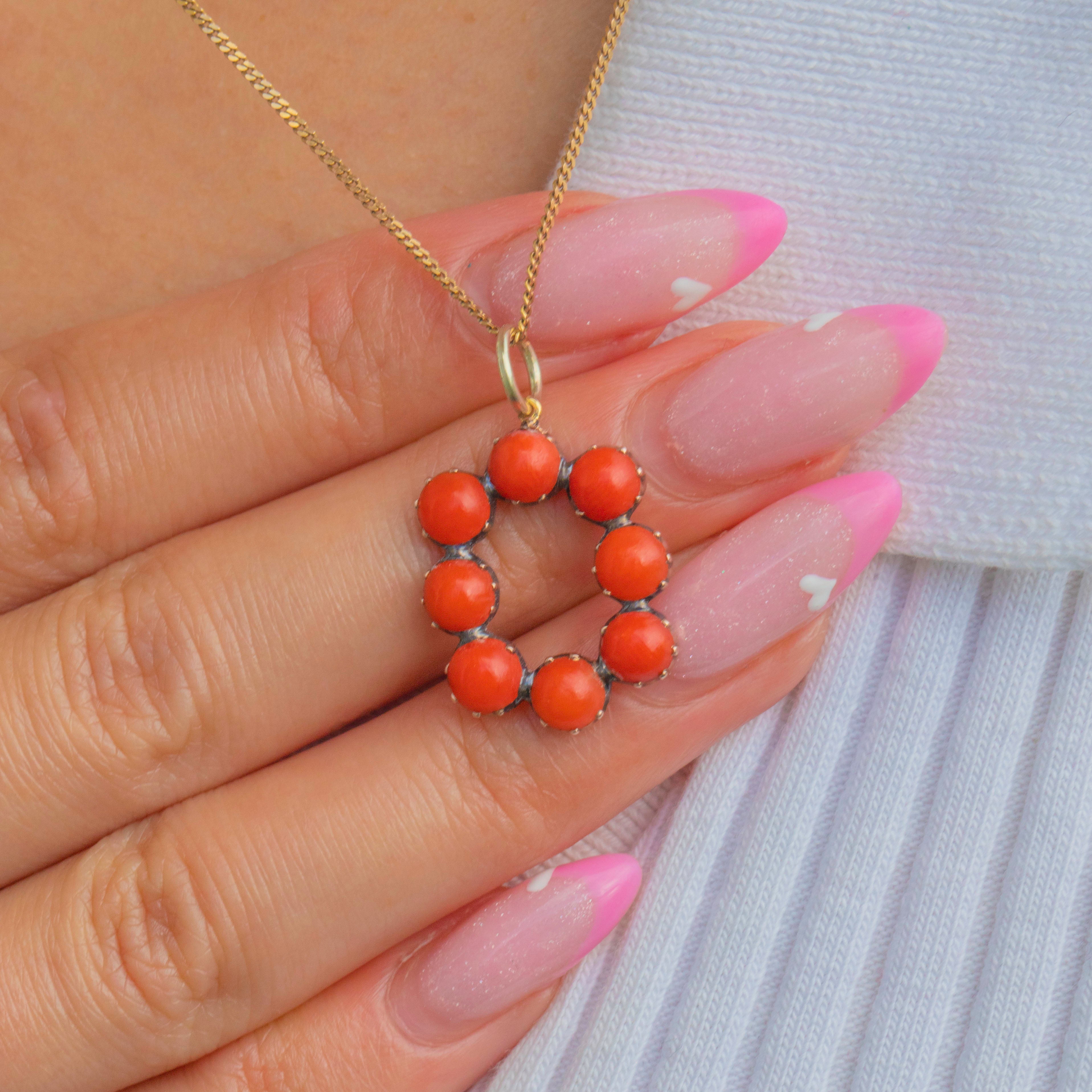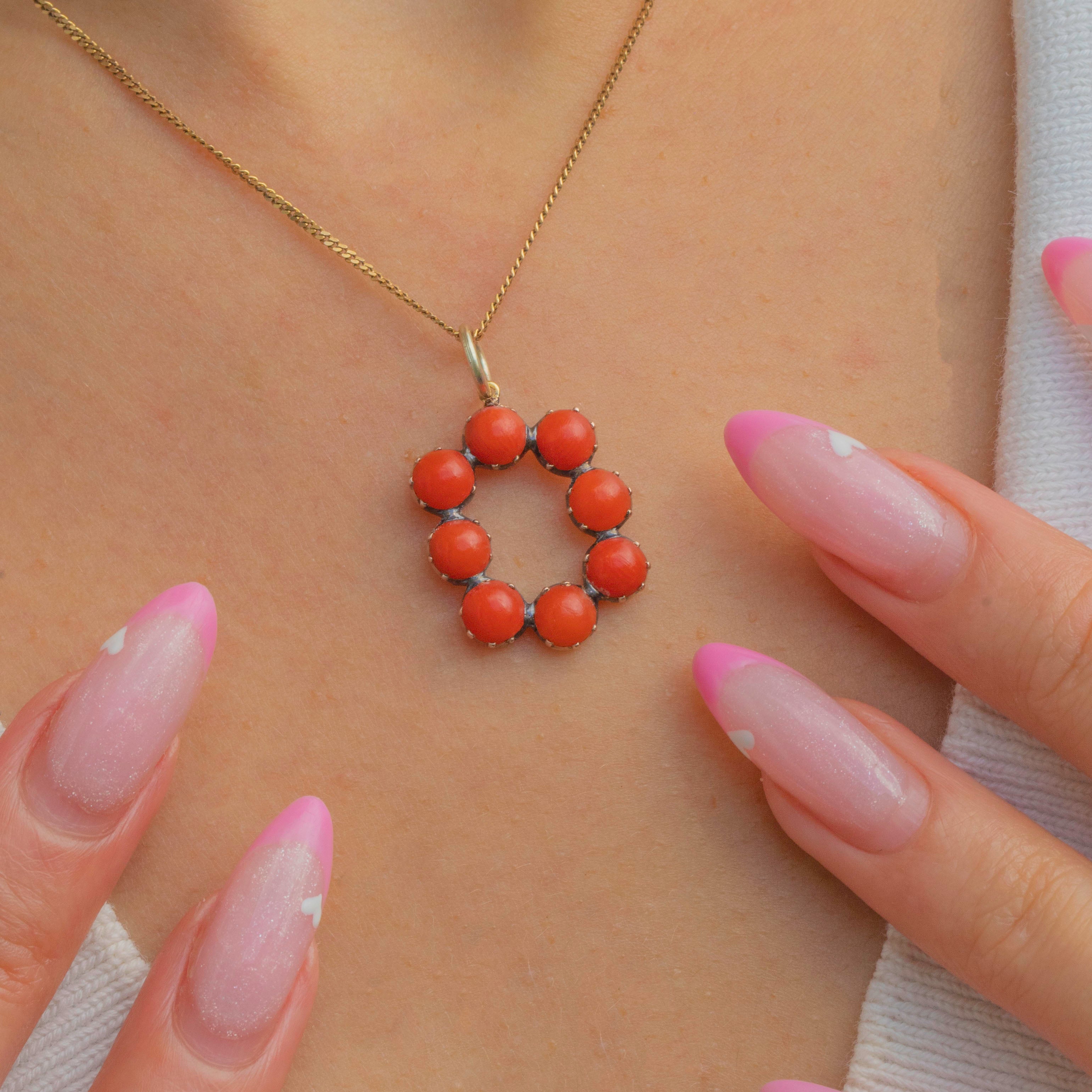 Coral was cherished during this period for its protective and talismanic qualities, and this delicate pendant embodies that timeless sentiment perfectly.