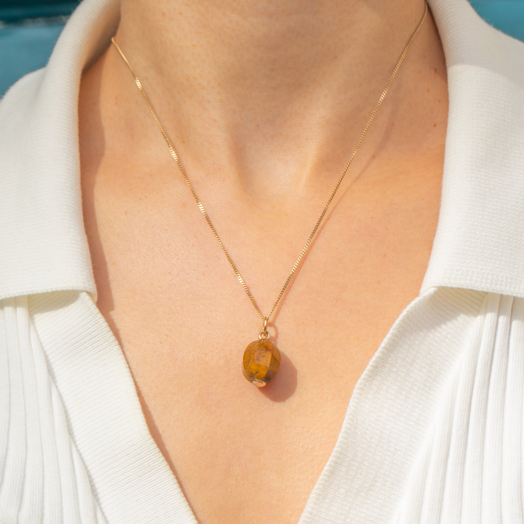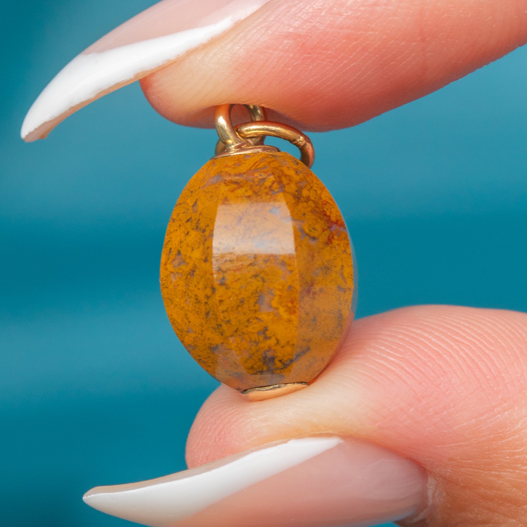 It’s finished with 9ct Gold fittings and a jump ring, ready to slip onto your favourite chain for effortless, everyday wear. Understated yet full of character, this is an easy piece to love and layer—rich in colour, history, and texture.