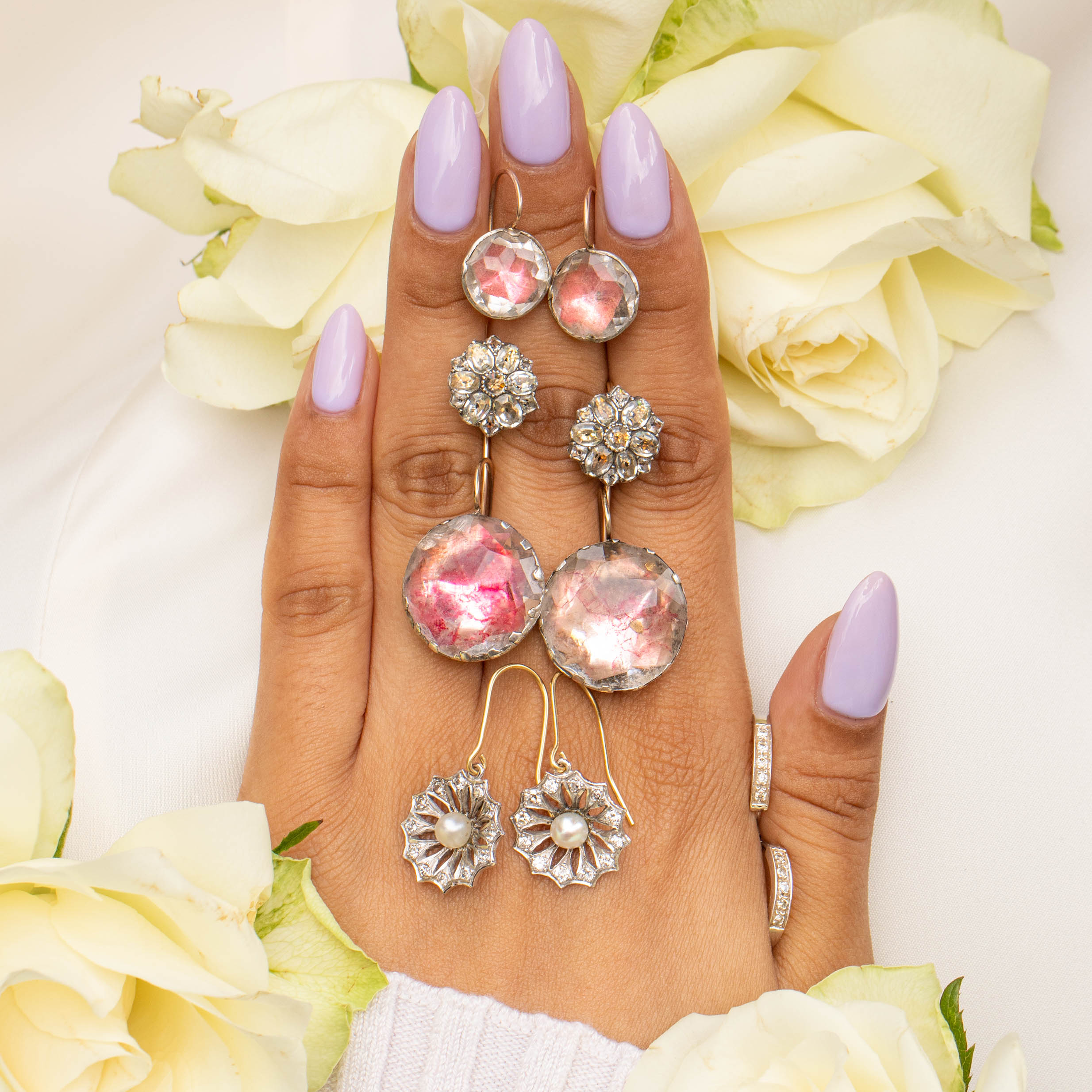 Black Dots were commonly applied to the back of Paste during the Georgian era to imitate the culets of Diamonds, effortlessly giving the look of Diamonds! These beauties have been foiled with a light peach colour, which still shows through despite having been made over 200 years ago!