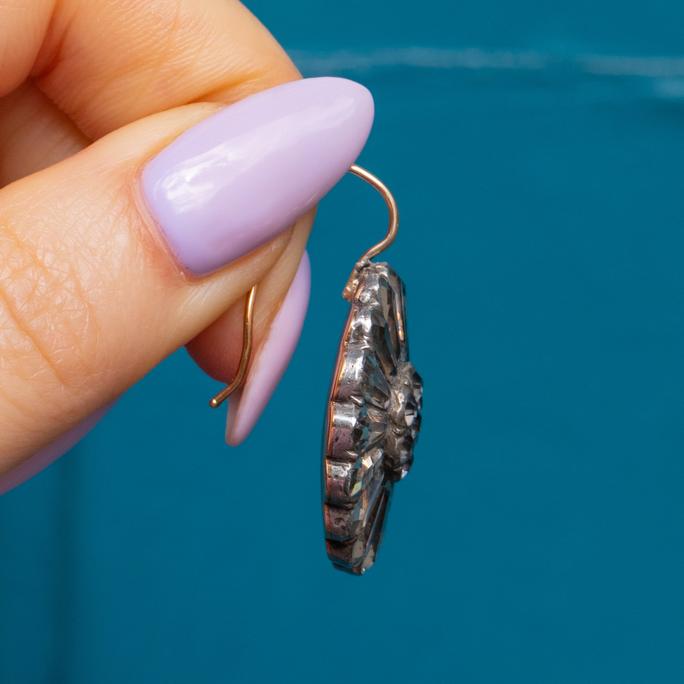 The impressive size of these Georgian Silver Paste earrings means they fall just below the lobe and can't go a miss however you choose to style your hair. With 15ct Gold hooks, these antique earrings are both stunning to look at and incredibly comfortable to wear!