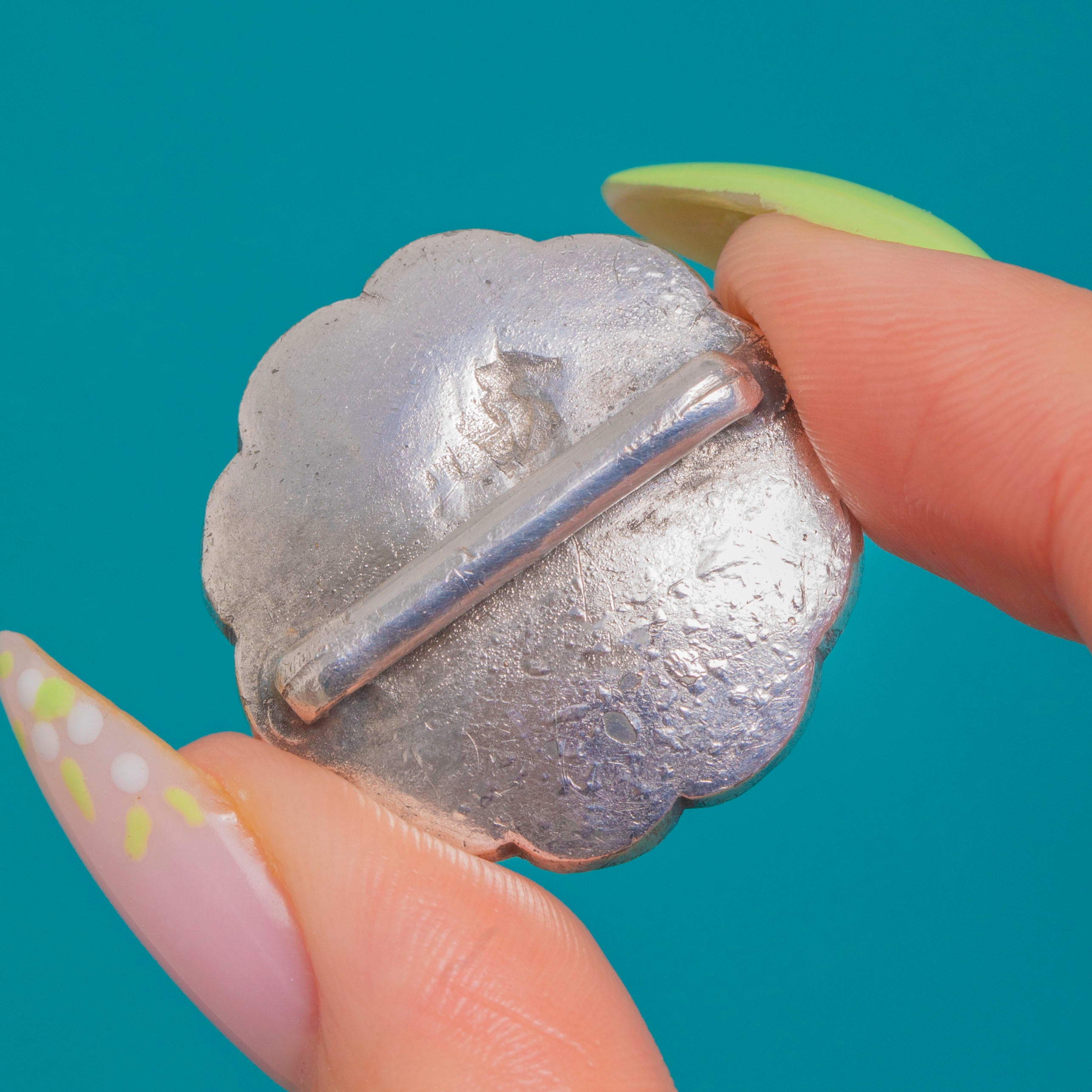 VERY GOOD: The Paste stones remain bright and lively with only very minimal surface wear visible under close inspection. The Silver setting is well preserved and securely holds the stones in place. There is some wear on the back, including a ding, but the slider is firmly soldered, and the piece is ready to wear. Overall, the pendant has been beautifully cared for with minimal signs of age.