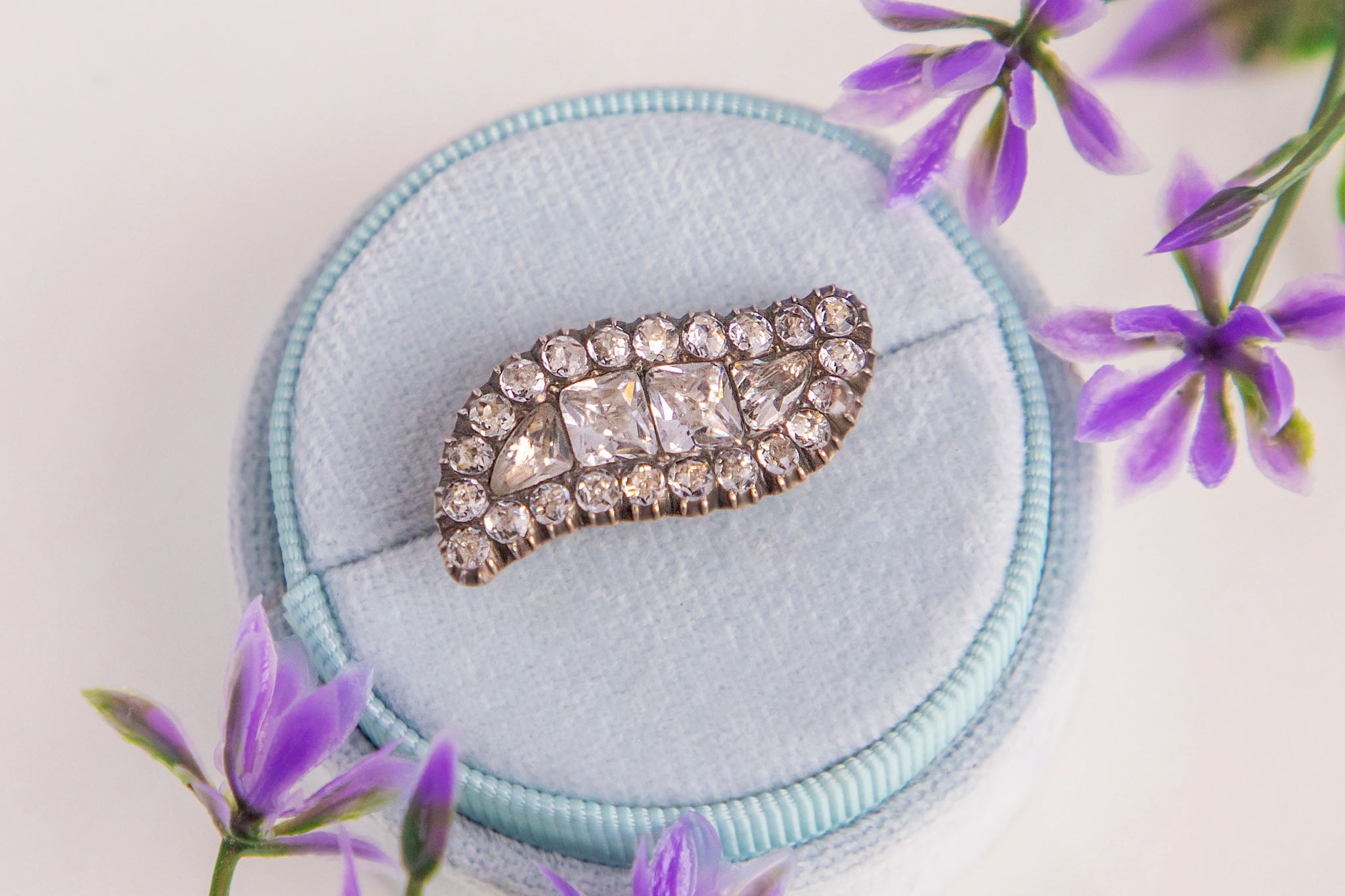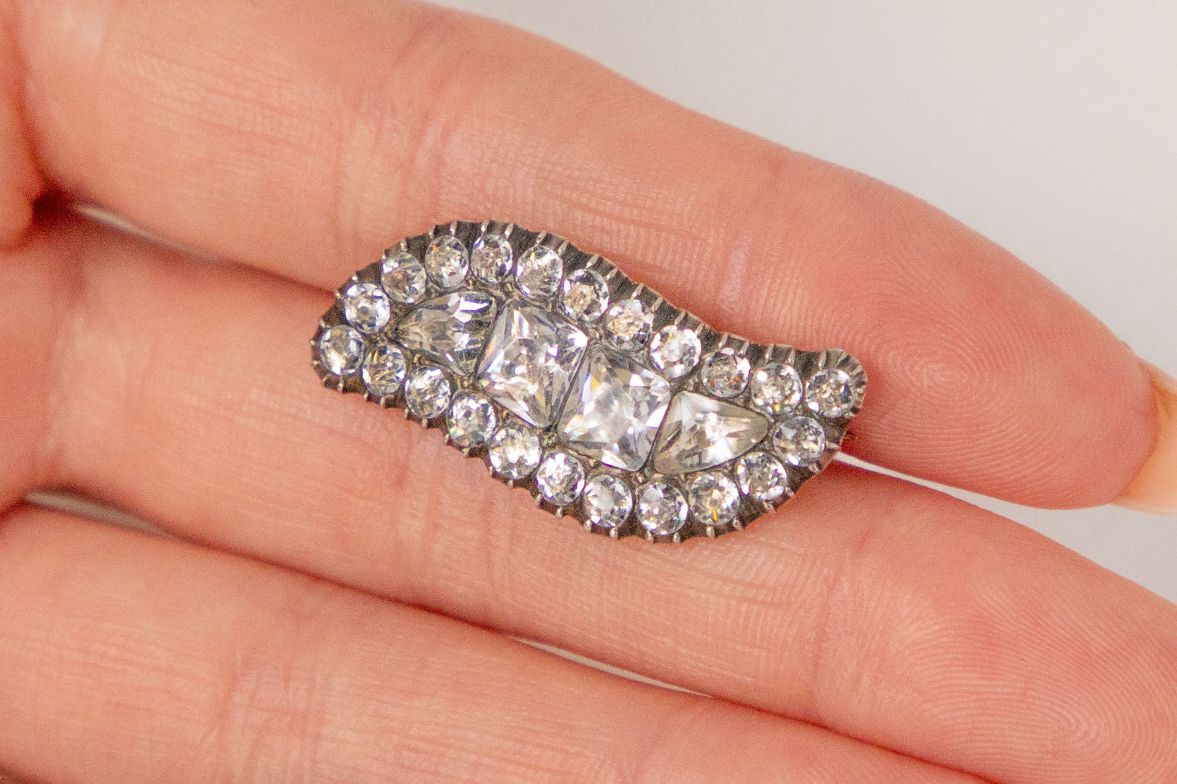 EXCELLENT: This Georgian Sterling Silver Paste brooch is just in wonderful condition. All of the Paste gems still retain their electric sparkle and are secure in their settings. The back of the brooch is also perfectly smooth to the touch, and the c-clasp is in perfect working order. What a fabulous Georgian brooch, ready to be worn and loved once again in the 21st century.