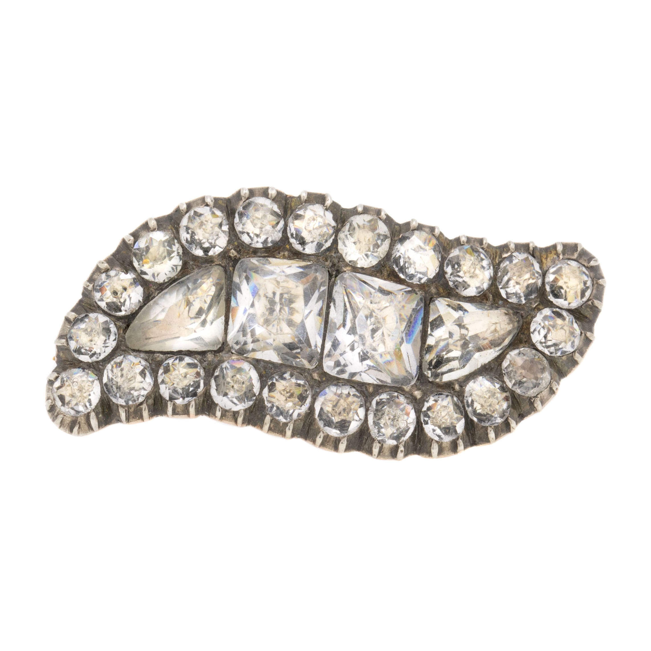This Georgian Sterling Silver Paste brooch is an incredible find! Crafted into an elegant wave design, this antique brooch has been crafted from Sterling Silver and beautifully crisp Paste gemstones.