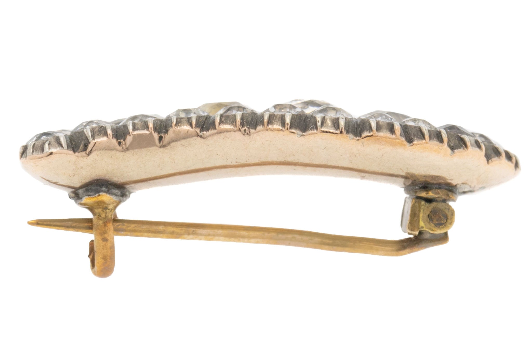HALLMARKS: Tests as a low carat Gold back, just under 9, with Silver settings. Pin & c-clasp are Metal.