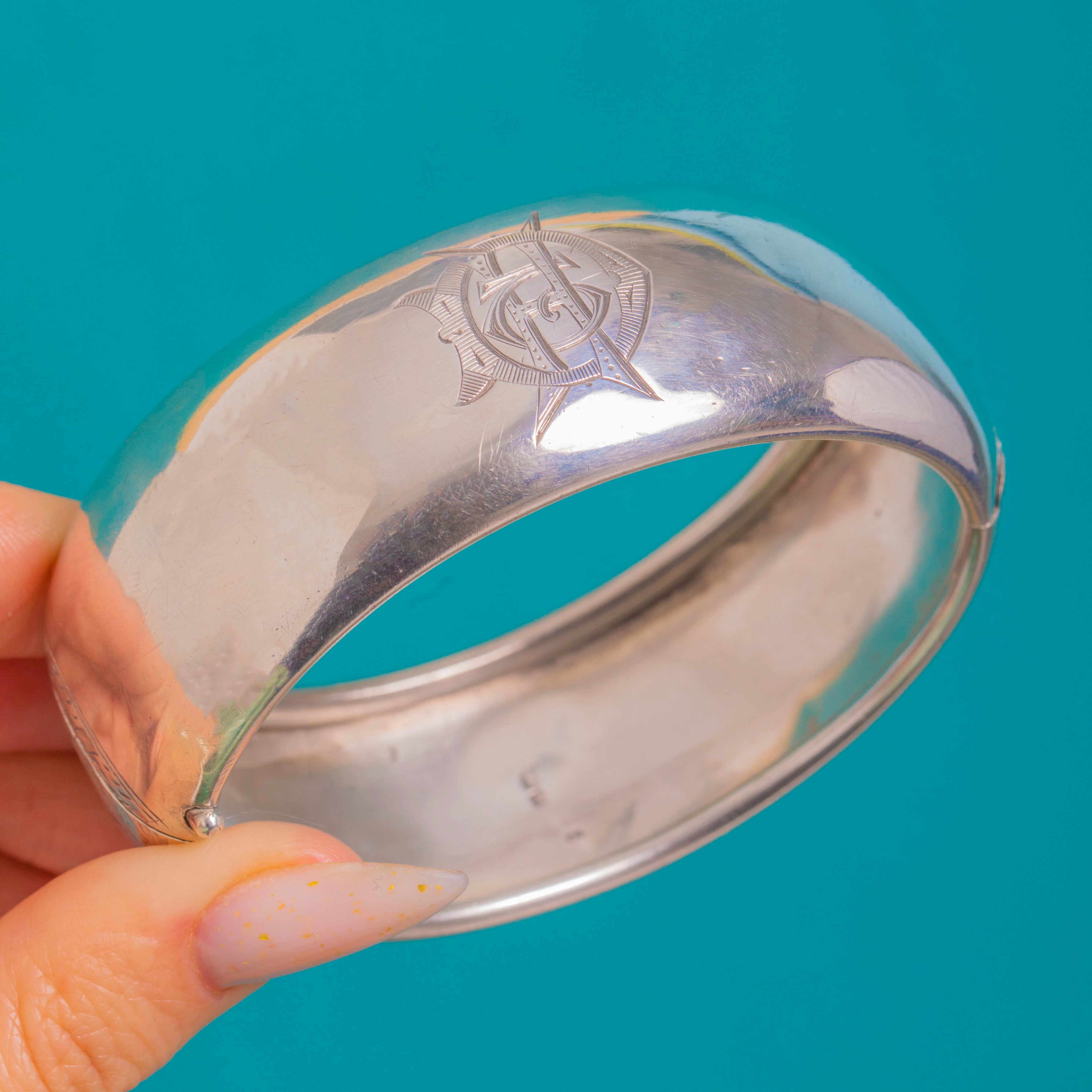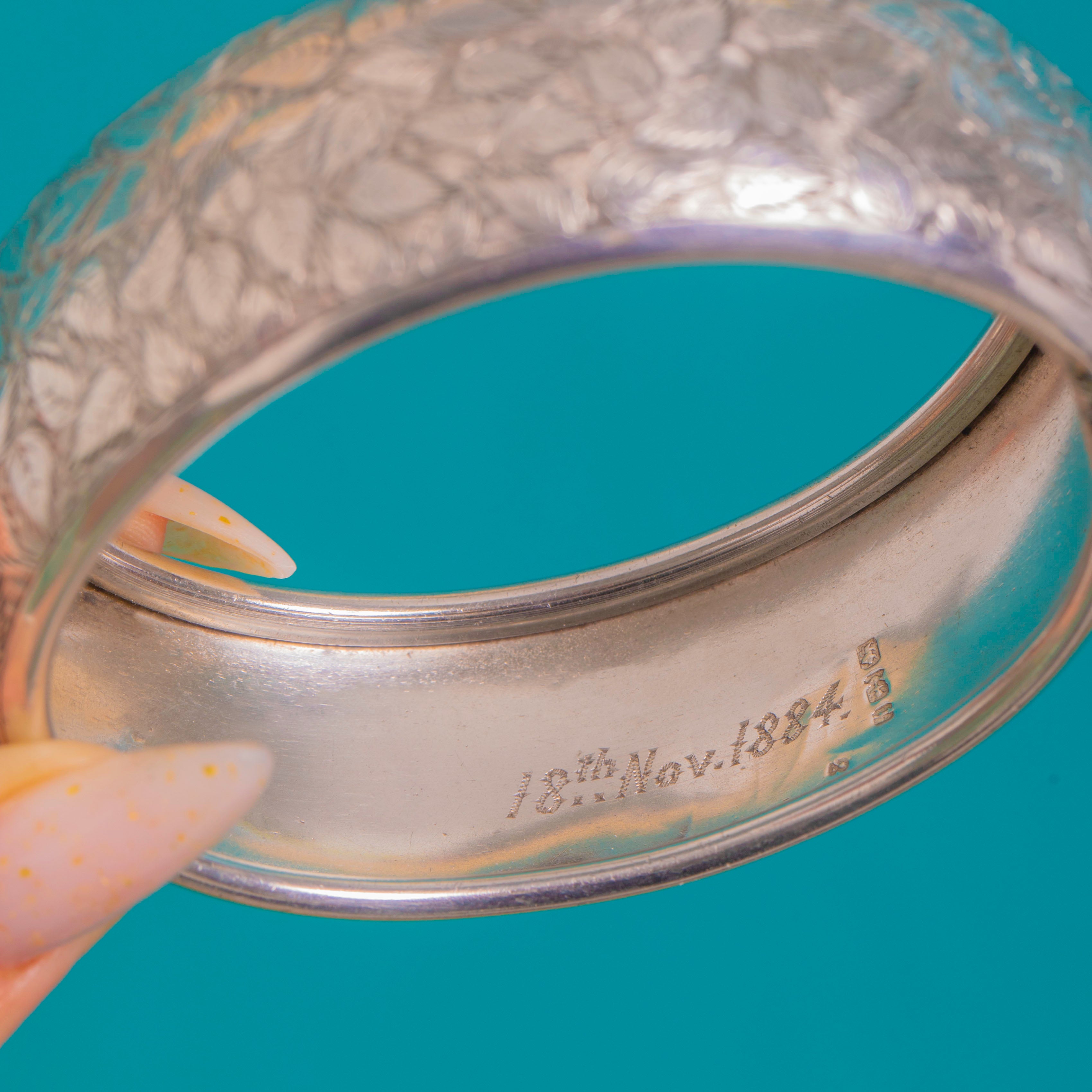 Heavy Domed Profile Victorian Silver Engraved Bangle c.1884